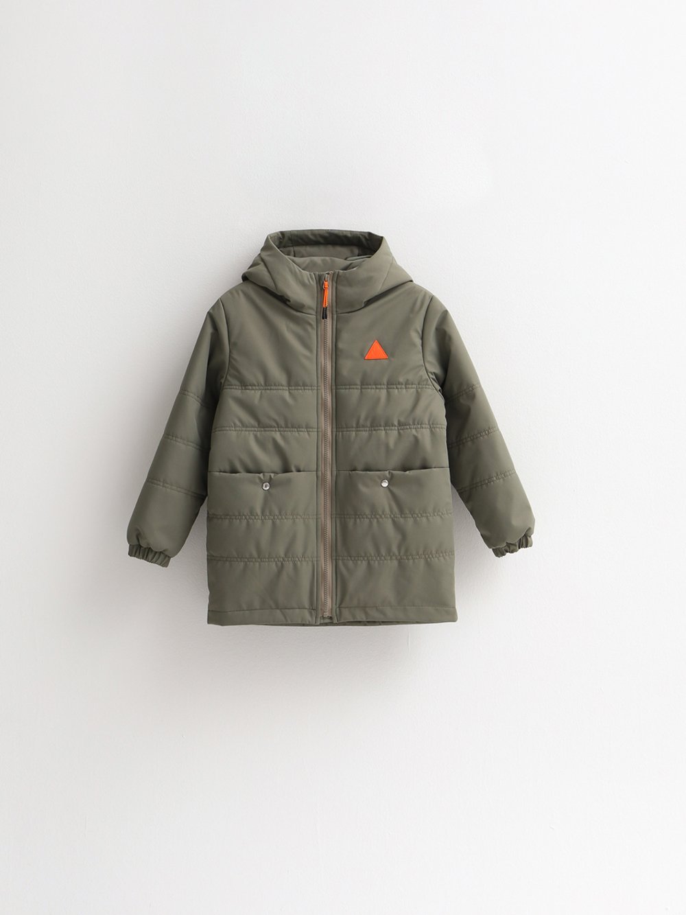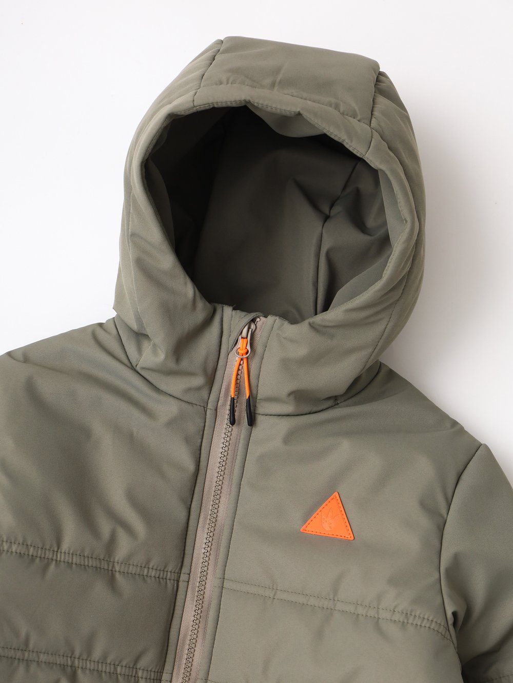 Куртка с застежкой на тракторную молнию с внутренним ветрозащитным клапаном и втачным капюшоном с цельнокроеным воротником-стойкой. Вместительные карманы с застежкой на кнопки спереди.