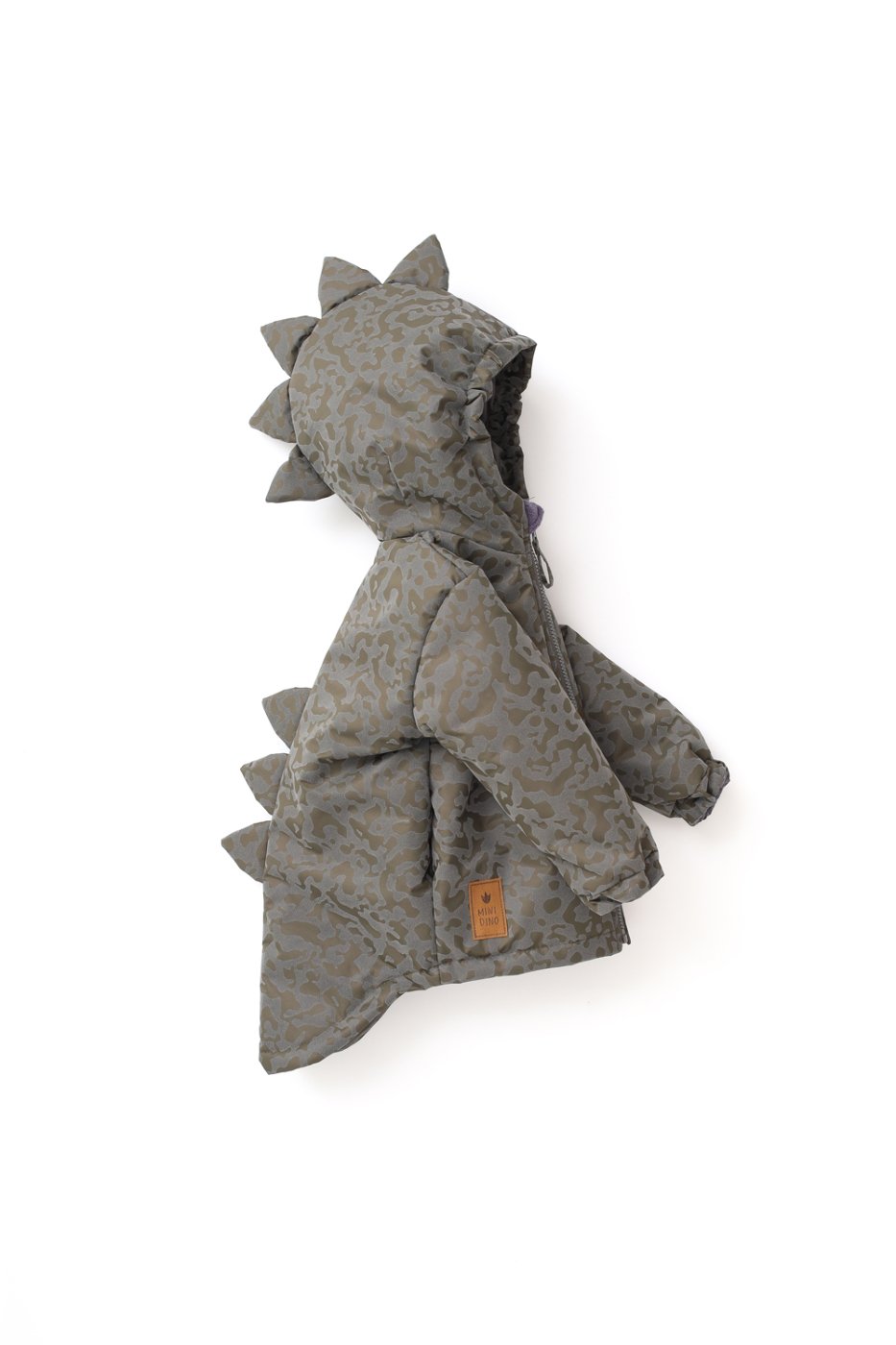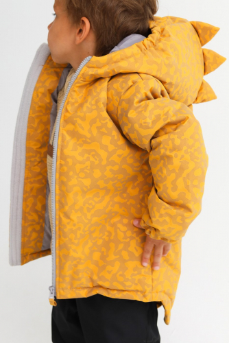 Куртка удлиненная, с застежкой на молнию «трактор». Спинка удлиненная, с фигурной линией низа, со средним швом с «гребнями дино». В боковых швах два кармана. Рукава с манжетами со сборкой на резинку, с изнаночной стороны флис. Капюшон с цельнокроенной стойкой, со средним швом и вытачками из линии горловины. В среднем шве капюшона расположены «гребни дино». Примерный температурный режим от -5°С до+10°С.