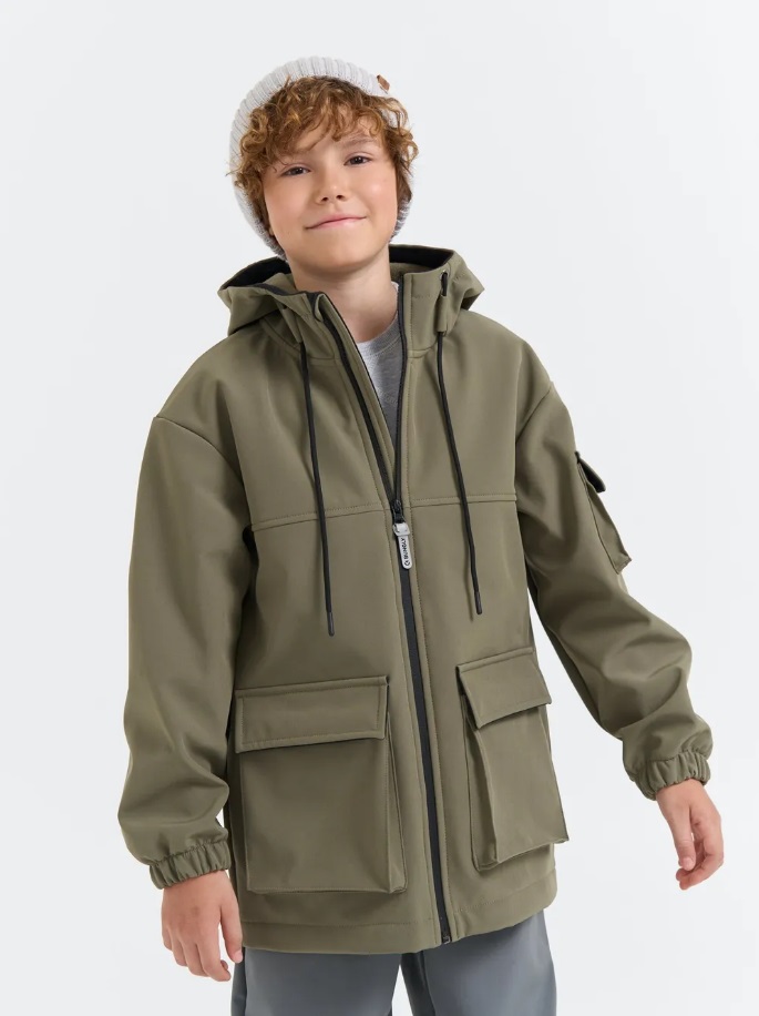 Мембранная ткань софтшелл с показателями 10000/10000 обеспечивает оптимальную защиту от влаги и продувания, позволяя детям активно проводить время на улице в любую погоду: не промокает даже после прыжков по лужам, а грязь легко смывается.