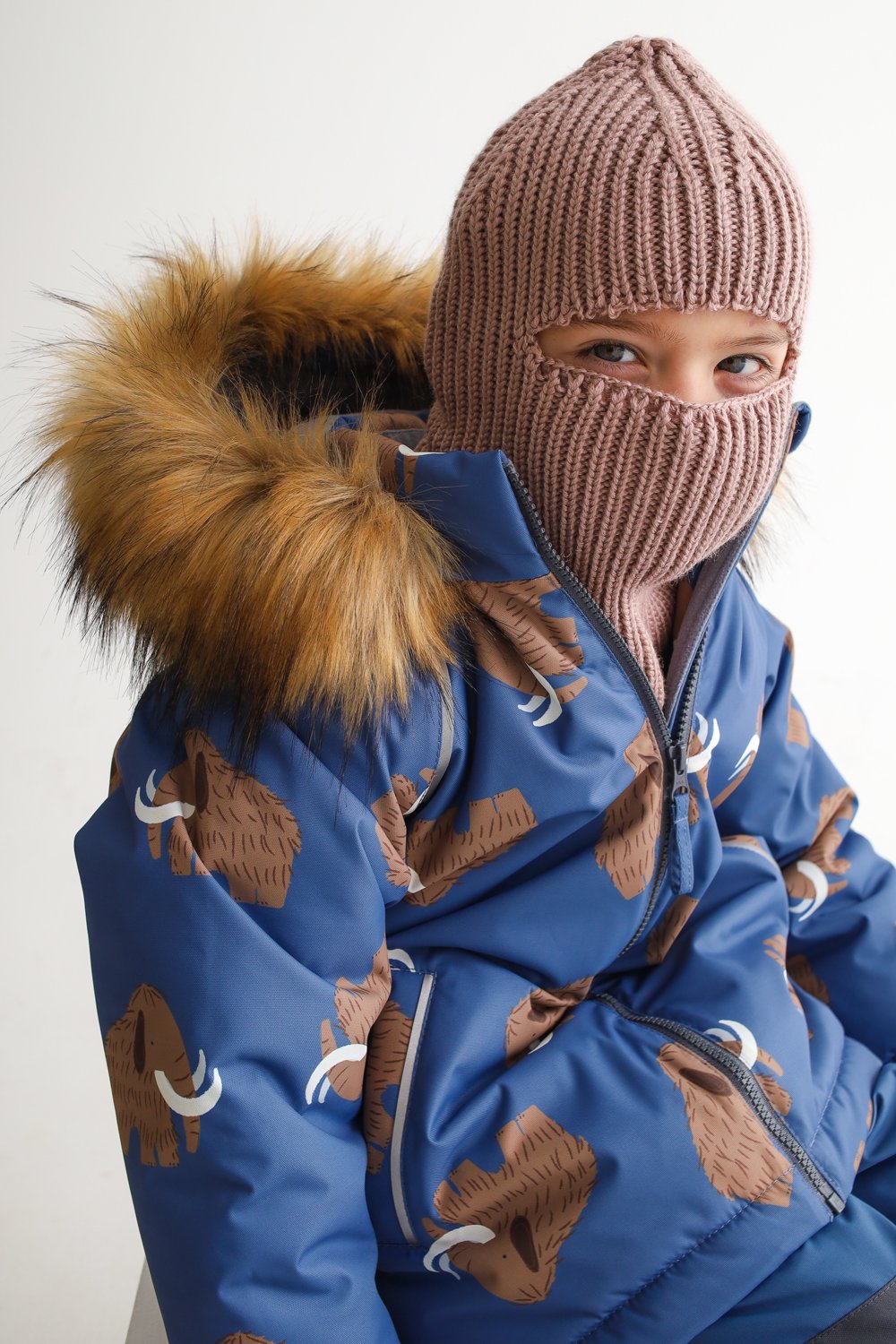 Куртка зимняя Полюс принт мамонты деним