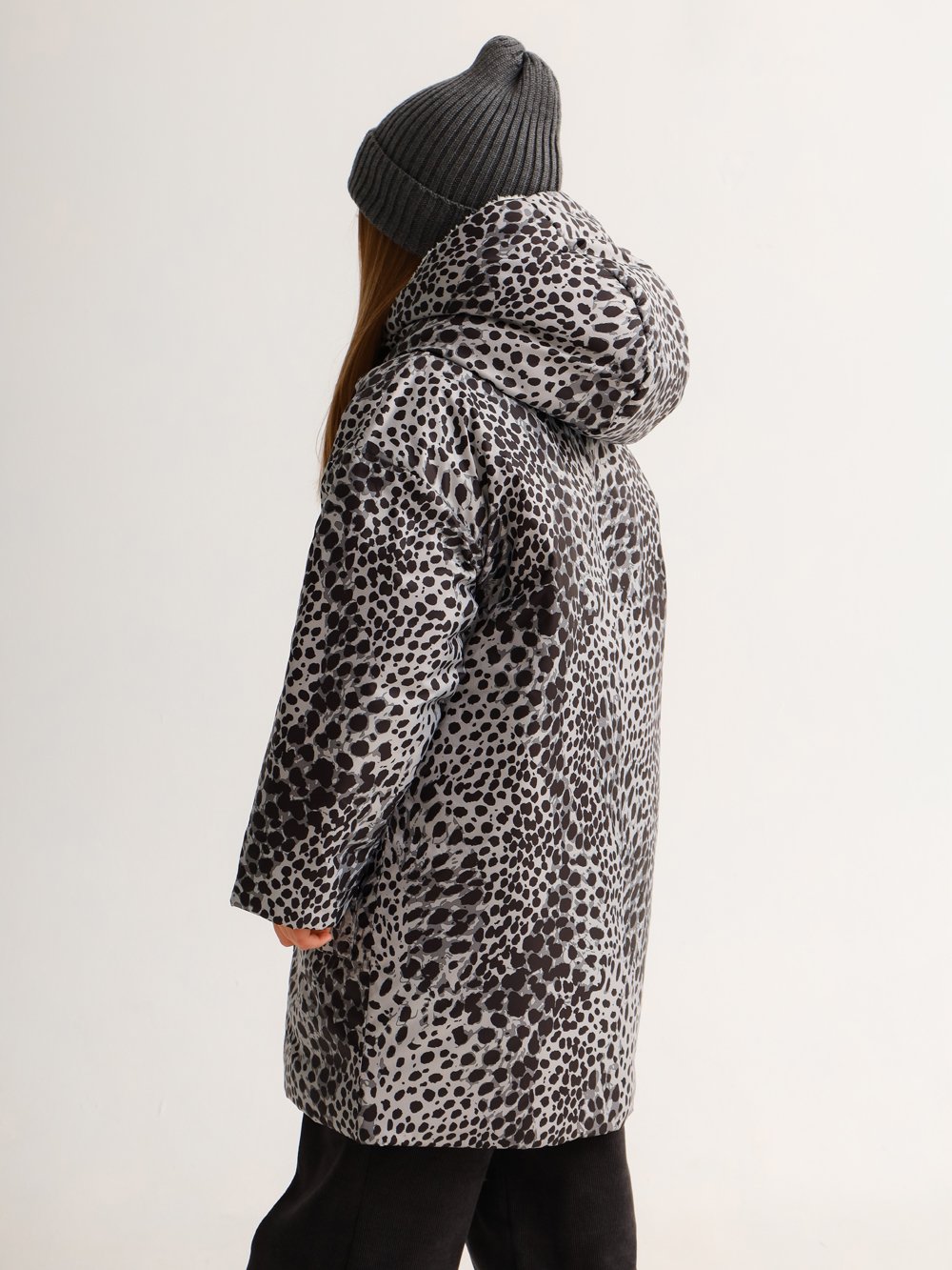 Два накладных кармана спереди с двумя входами. Объемный капюшон-каска с цельнокроеным воротником-стойкой и подкладкой из искусственного меха. Примерный температурный режим от -5°С до -35°C