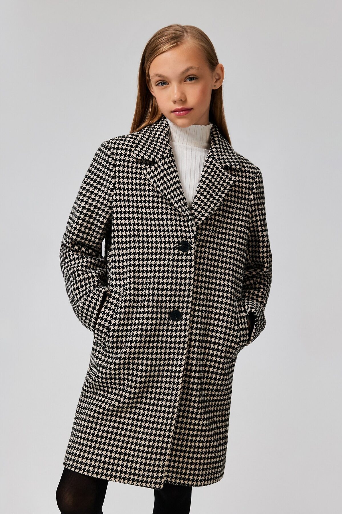 Пальто детское для девочек Oruo бежевый с черным Бежевый с черным