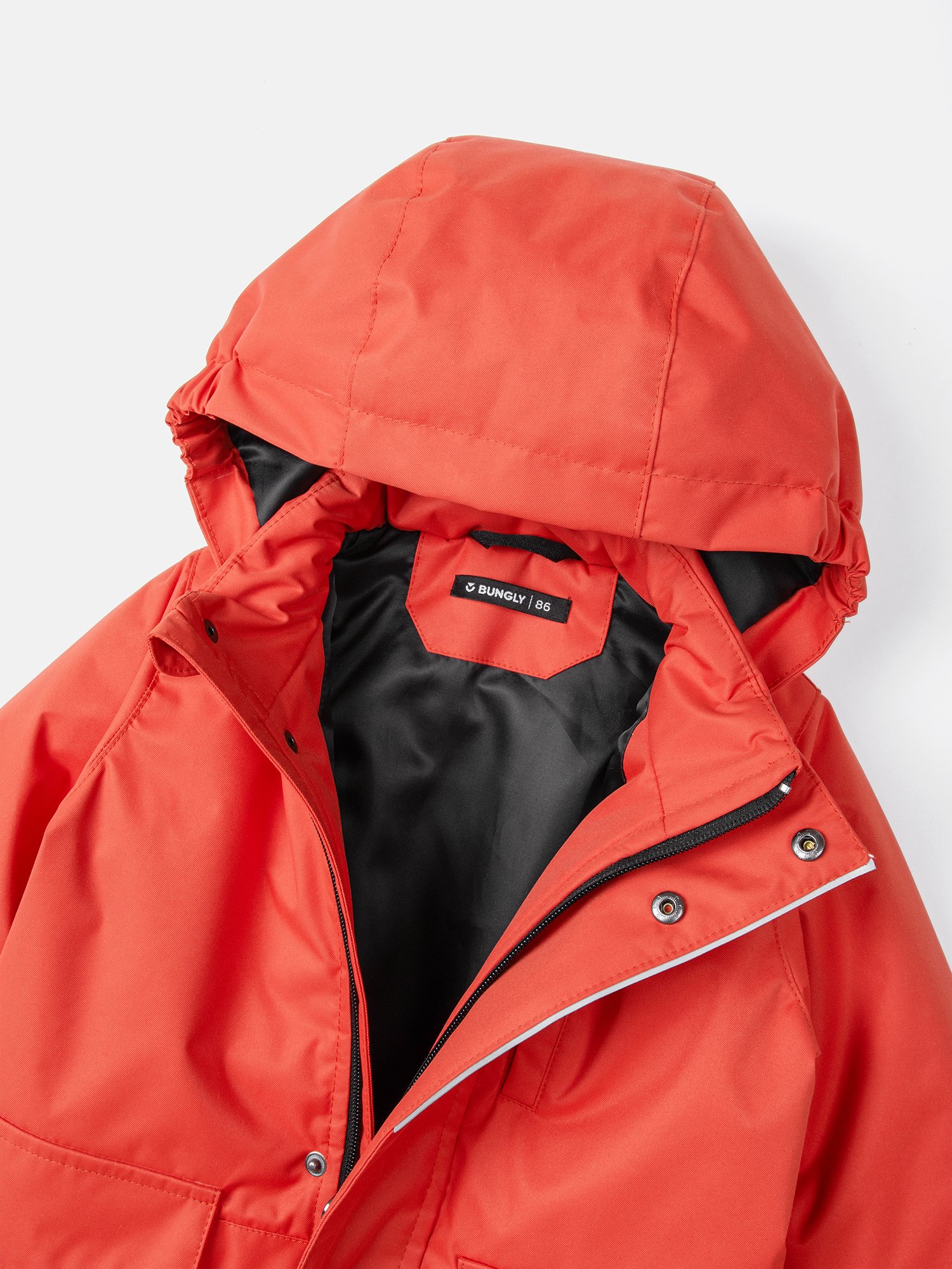 Воротник-стойка и несъемный капюшон с утяжкой на резинку для защиты от ветра.