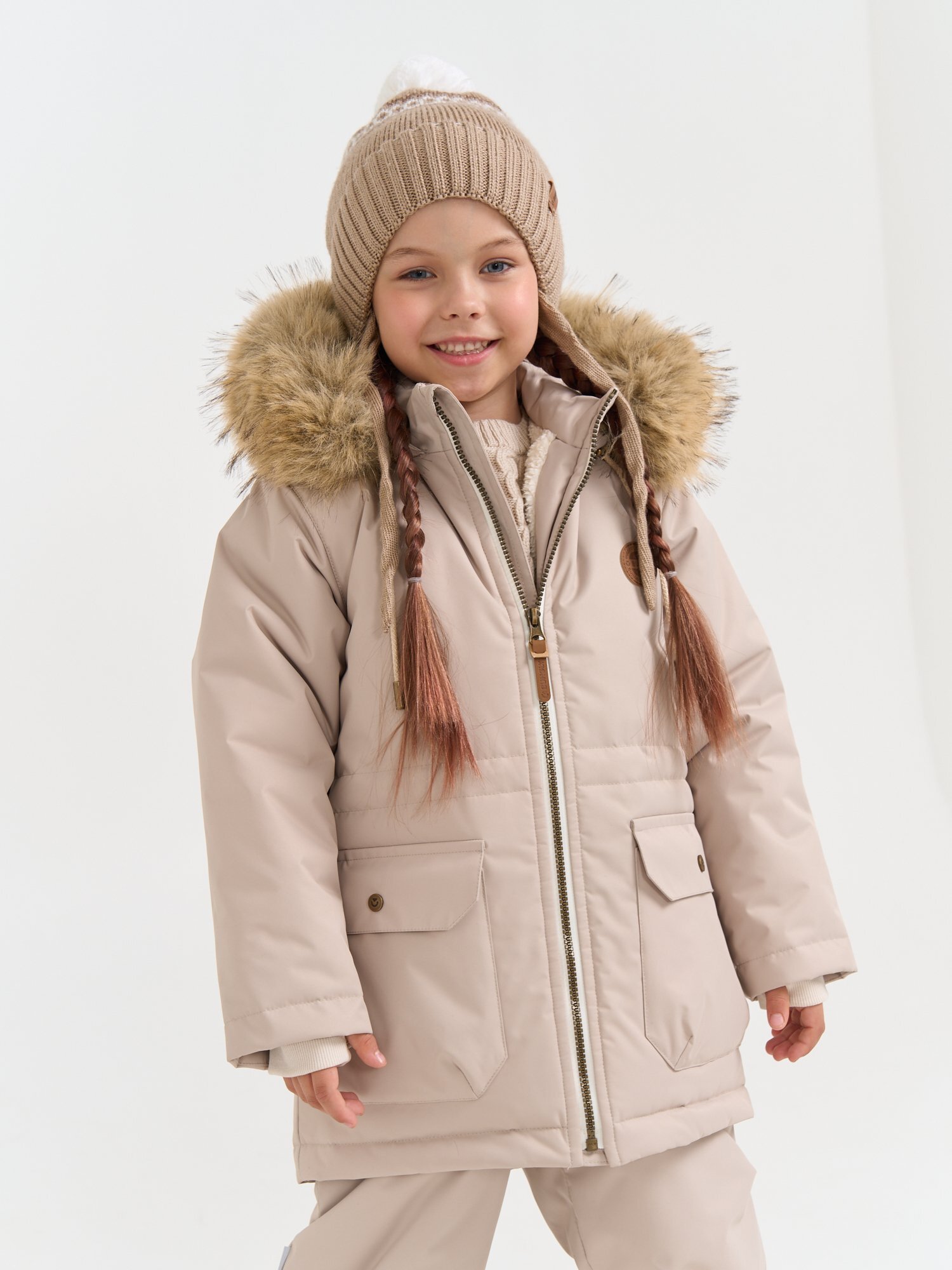 Рукава с эластичными манжетами из кашкорсе и с отверстием для большого пальца (с 104 размера) обеспечивают комфорт при движении и защищают ладони от холода.