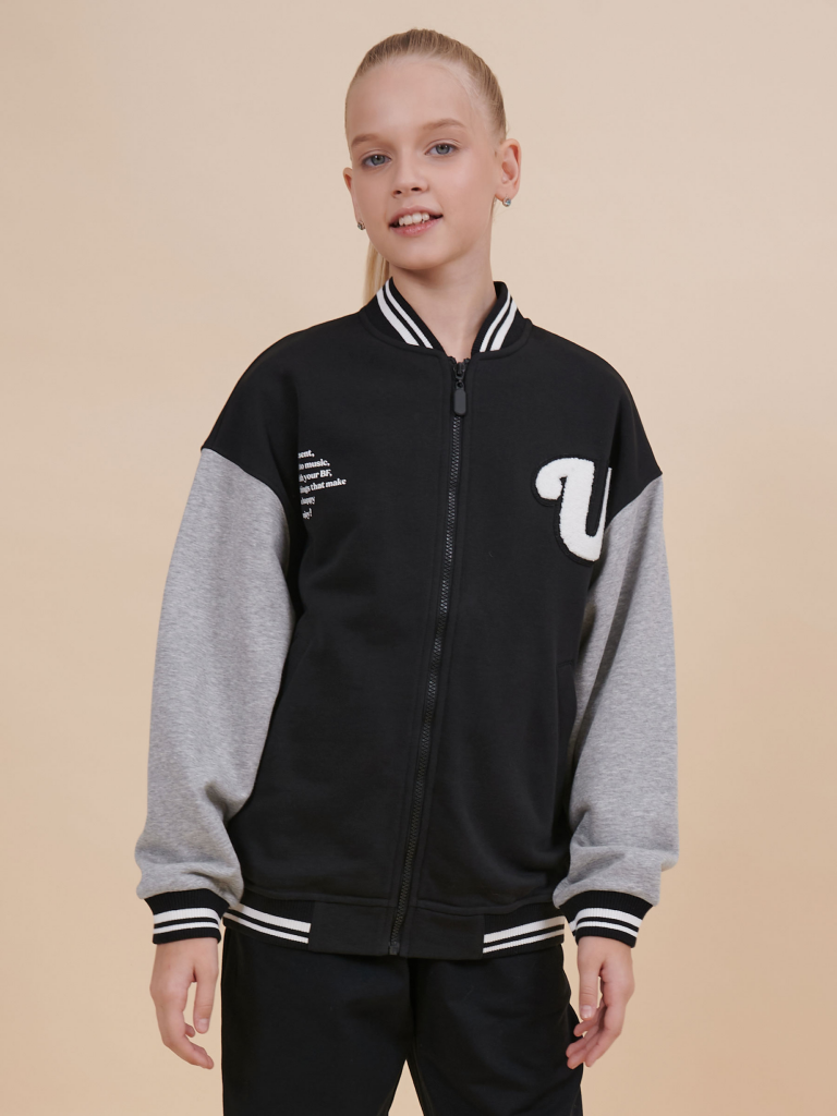 Бомбер для девочки в актуальном стиле преппи. Куртка комфортного объёма со спущенным плечом подаритребенку комфорт и свободу движений. Обработка горловины, низа и низа рукавов из резинки в университетском стиле. Модель выполнена из гладкой и тактильно приятной ткани, которая при этом держит форму. В составе ткани преобладает высококачественный хлопок — бомбер мягкий и великолепно пропускает воздух, давая коже дышать. Благодаря эластану куртка сохраняет отличную форму в течение продолжительного времени. Жакет декорирован нашивкой и принтом по переду, а также принтом на спинке. Принты эластичные и стойкие — без проблем переносят многочисленные стирки. Модель представлена в нескольких цветах: голубой, бежевый, розовый и черный. Его просто комбинировать с любыми брюками, джинсами. Размерная линейка: 1 (86): 2 (92): 3 (98): 4 (104): 5 (110): 6 (116): 7 (122): 8 (128): 9 (134): 10 (140): 11 (146). Бомбер подходит для девочек дошкольного и младшего школьного возраста, а также девочек-подростков. Такую куртку можно носить в садик, на учёбу, на прогулки, на отдых. Бомбер трикотажный детский подходит для круглогодичного применения: прохладным летом, осенью, зимой, весной и демисезон. Это чудесный подарок дочке, внучке, племяннице или сестре на любой праздник. Выбирайте нужный размер по таблице размеров на фото. Цвет товара на экране вашего устройства может отличаться от цвета изделия вживую. Состав: 87%хлопок 13%полиэстер Возрастная группа: Kids Сезон: Весна Год: 2024 Пол: Девочки