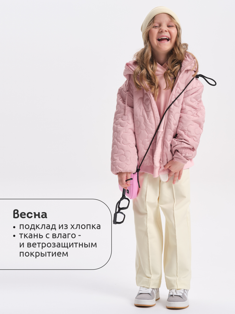 Укороченная куртка для девочки: стиль, комфорт и безопасность в каждой детали! Куртка демисезонная для девочки — идеальный выбор для весенних и осенних прогулок. Она станет настоящим хитом сезона, сочетающим в себе стильный дизайн и множество продуманных функций, которые порадуют как вас, так и вашу дочку! Куртка весенняя на тонком синтепоне, что делает ее легкой и теплой одновременно. Ваша дочка будет чувствовать себя комфортно даже в прохладную погоду. Подклад из мягкого хлопкового трикотажа обеспечивает комфорт, в рукавах подклад из полиэстера облегчает надевание. Куртка с капюшоном. Двухшовный глубокий капюшон с утяжкой на шнурок отлично защищает от ветра и дождя. Прочная тракторная молния с защитой подбородка и удобным пуллером, что делает процесс застегивания максимально удобным для ребёнка. Под молнией ветрозащитная планка. Внутри рукава предусмотрен манжет из риба, который не позволит ветру задувать в рукава. Внутренняя регулировка изделия эластичным шнуром по низу обеспечивает идеальную посадку и защиту от ветра. Светоотражающие элементы в боковых швах и по центру спинки гарантируют видимость в темное время суток. По переду глубокие прорезные карманы с листачкой добавляют не только стильный акцент, но и обеспечивают место для хранения мелочей. Внутренний карман подходит для хранения важных вещей. Это позволит вашей дочке быть организованной и всегда иметь под рукой всё необходимое. Укороченная куртка весенняя для девочки — отличный выбор, который прекрасно подойдет как для малышек, там и для девочек подростков. Стильный дизайн, комфорт и множество практичных деталей сделают каждую прогулку веселой и безопасной. Не упустите возможность порадовать свою маленькую модницу! Рекомендуемый температурный режим не ниже 0°C. Не забывайте о выборе правильного размера. Используйте таблицу размеров на фотографии, чтобы выбрать подходящий размер. Обратите внимание, что цвет товара на экране вашего устройства может отличаться от реального. Состав: 100%полиэстер, подклад: 60%хлопок 40%полиэстер, подклад рукавов: 100%полиэстер, утеплитель: 100%полиэстер Возрастная группа: Kids Сезон: Весна Год: 2025 Пол: Девочки
