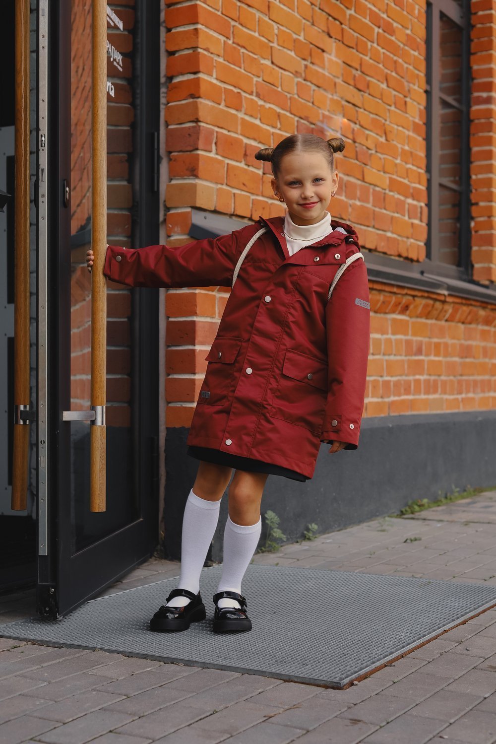 Спасет в непогоду и придаст уверенности при любых обстоятельствах – плащ от MINIDINO прямого кроя и лаконичного силуэта. За счет плащевой мембранной ткани изделие отлично защищает от осадков и пропускает воздух, сохраняя тепло. А это значит, что комфортные будни обеспечены.