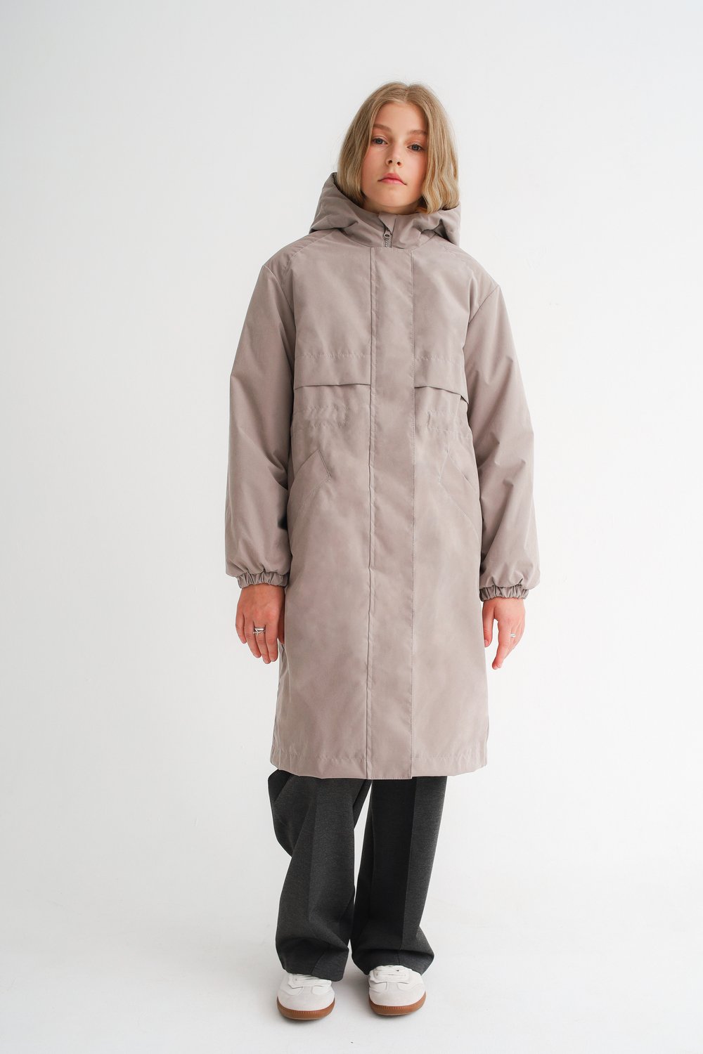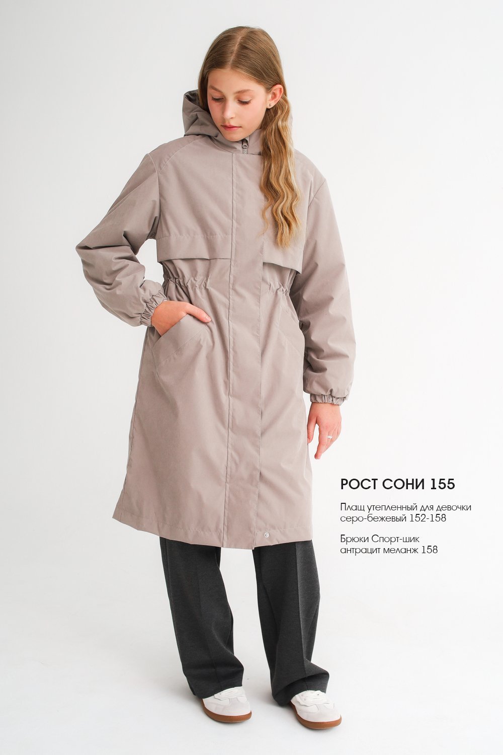 Плащ утепленный для девочки серо-бежевый