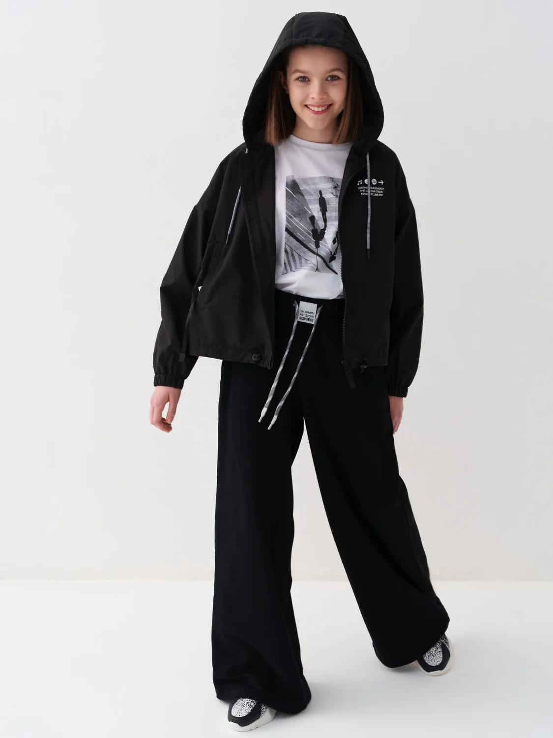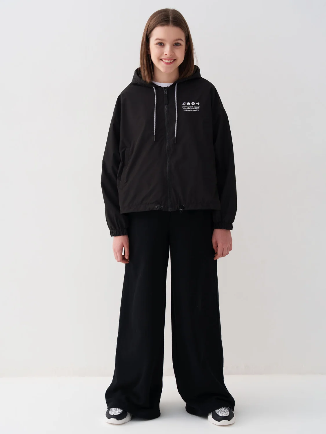 Ветровка для девочки подростка. Температурный режим от +20С до +10С. Ткань с ветрозащитным и водоотталкивающим покрытием. Внутри гладкая подкладка. Капюшон оснащён шнуром для регулировки. Два боковых кармана. Манжеты на резинке. Низ изделия можно утянуть с помощью эластичного шнура и стопперов. Изделие комфортное и практичное — отлично подойдёт для весенне-осеннего сезона.
