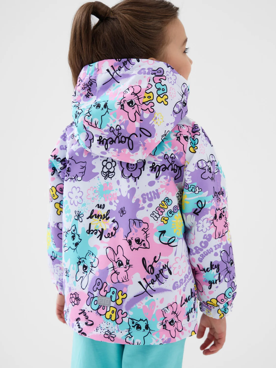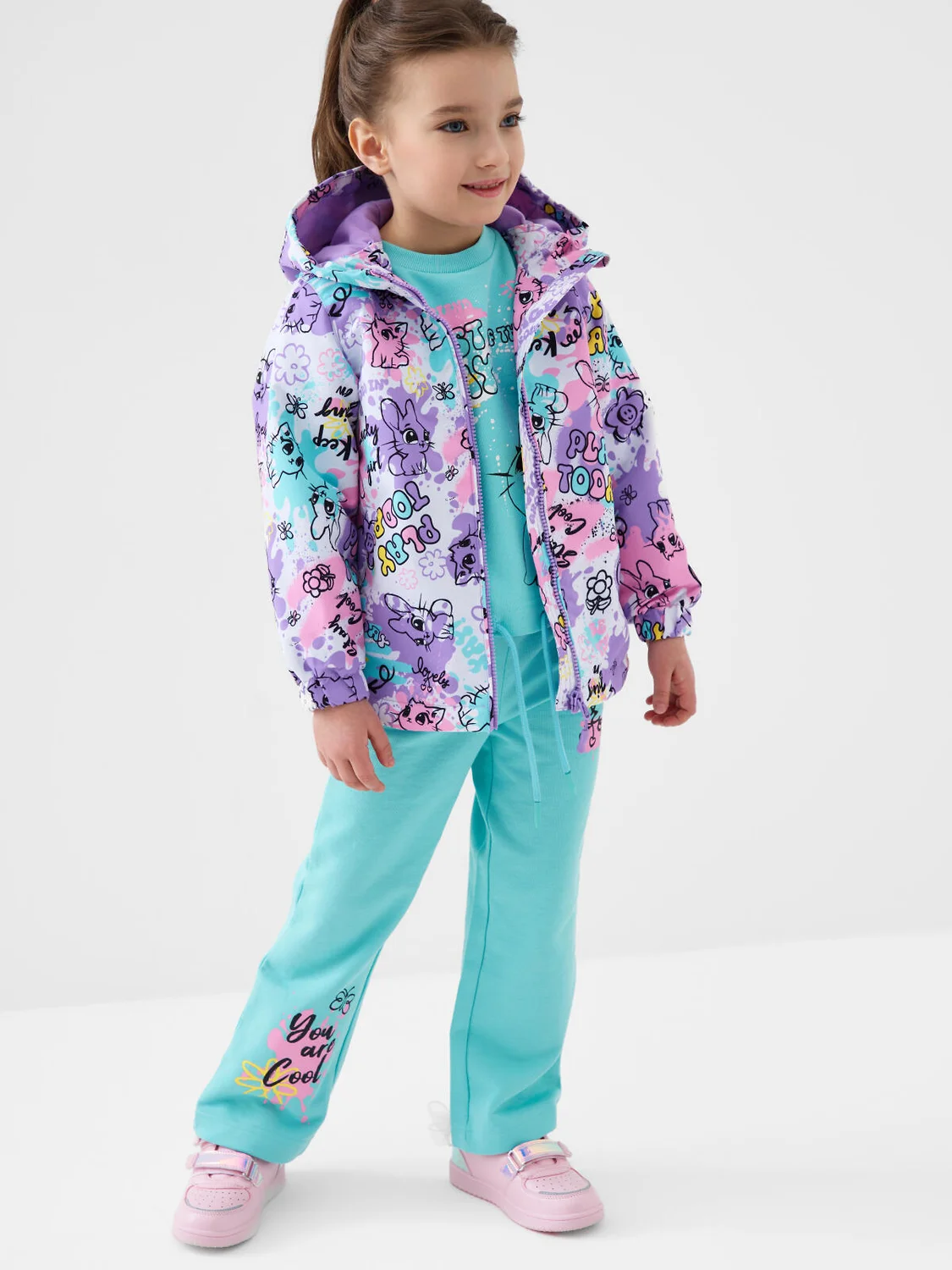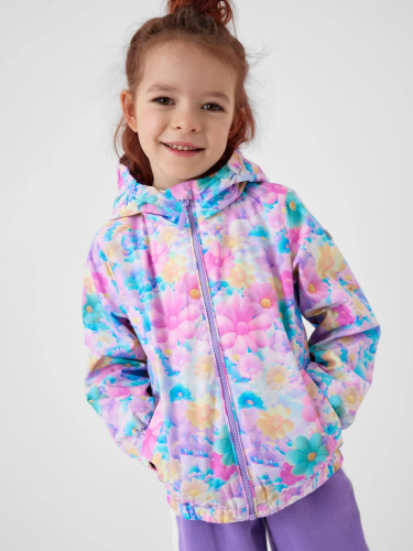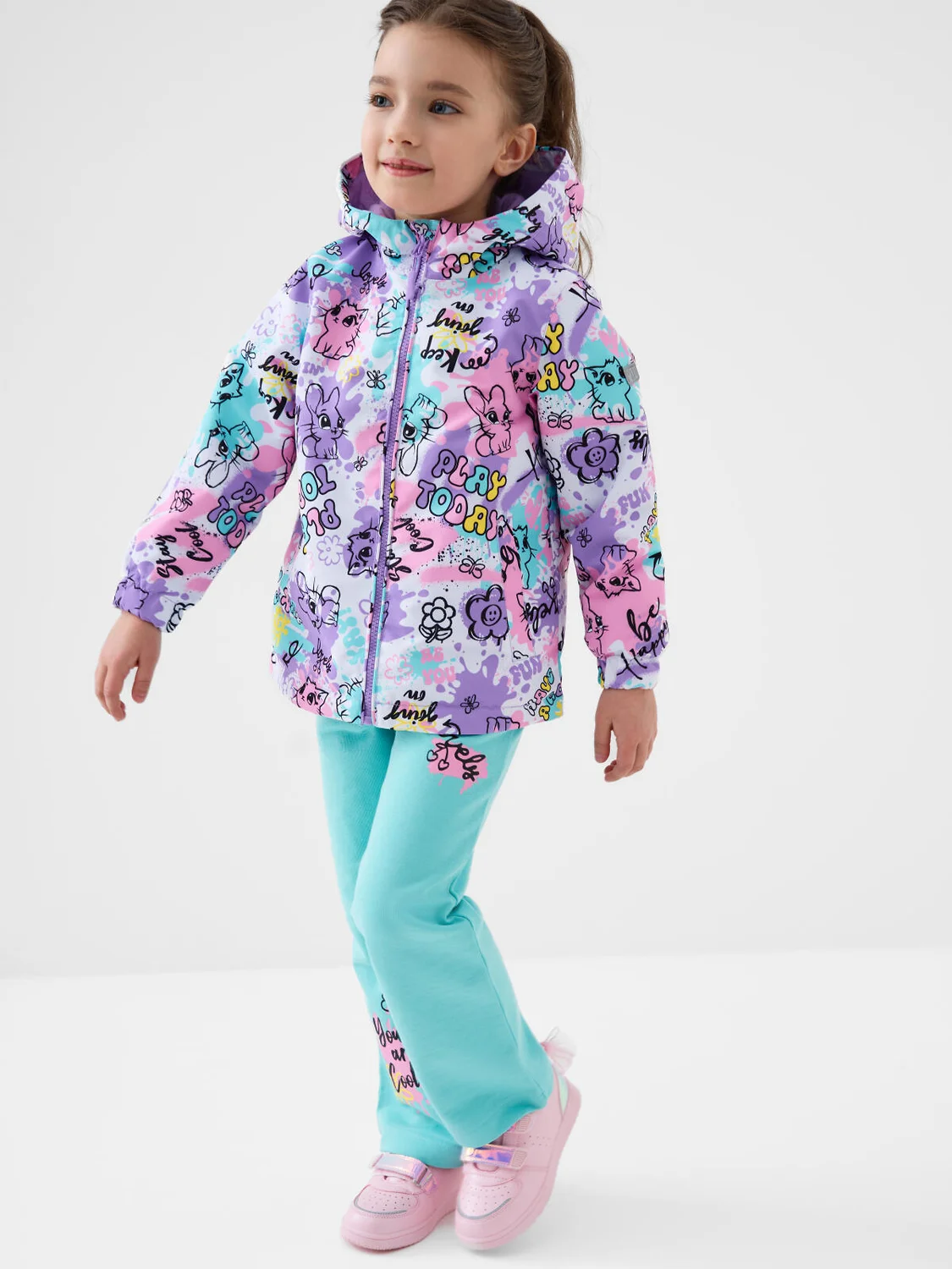 Ветровка детская для девочки. Температурный режим от +20С до +10С. Ткань с мембранным покрытием 5000х5000. Внутри флисовая подкладка. Капюшон несъемный с утяжкой стопперами. Боковые карманы на липучке. Внутренний карман на липучке. Манжеты на резинке. По низу изделия утяжка со стопперами. На рукаве и спинке есть светоотражающие элементы для безопасности в темное время суток.