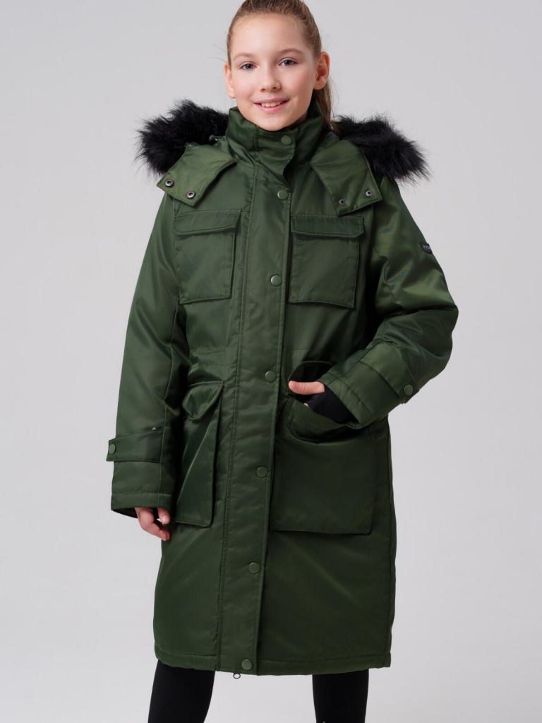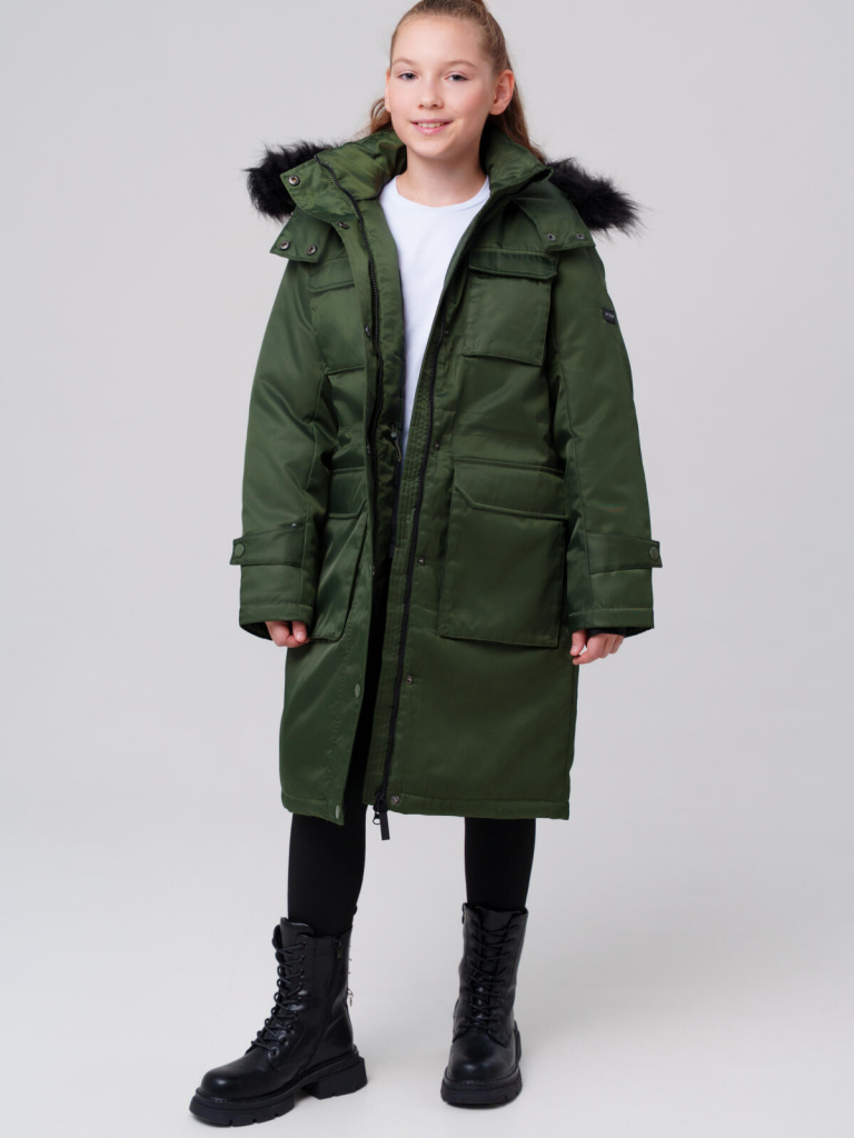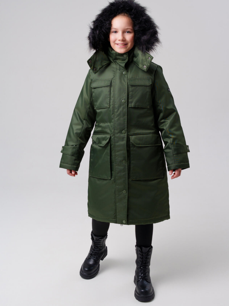 Пальто текстильное с полиуретановым покрытием для девочек темно-зеленый 32521103