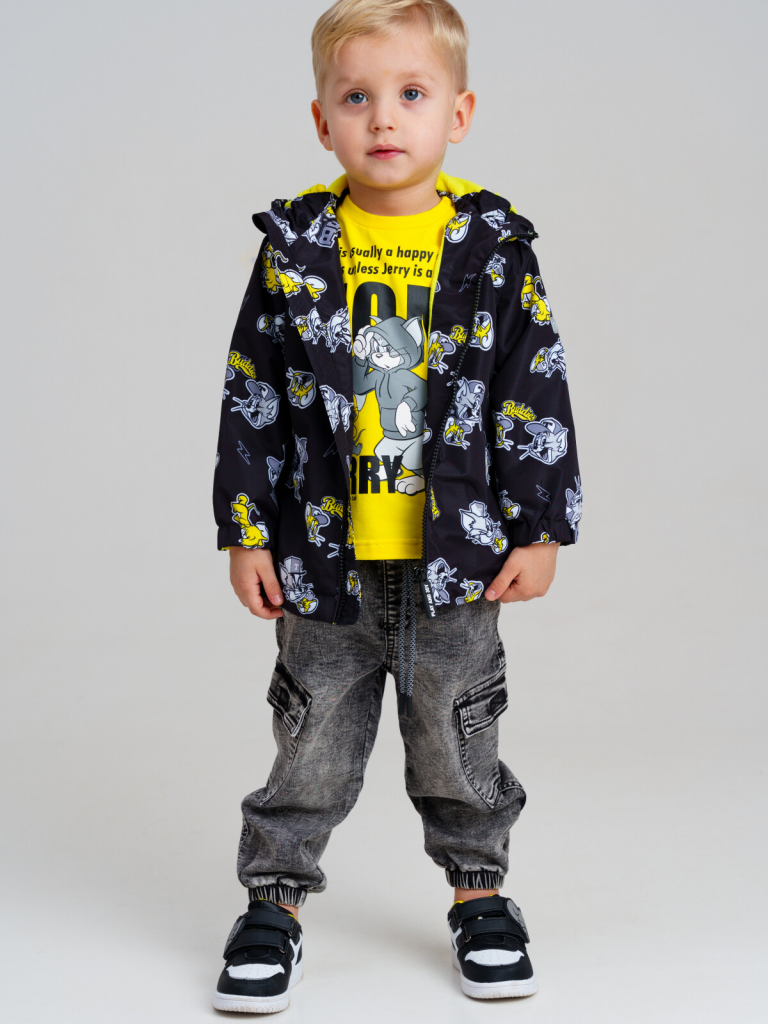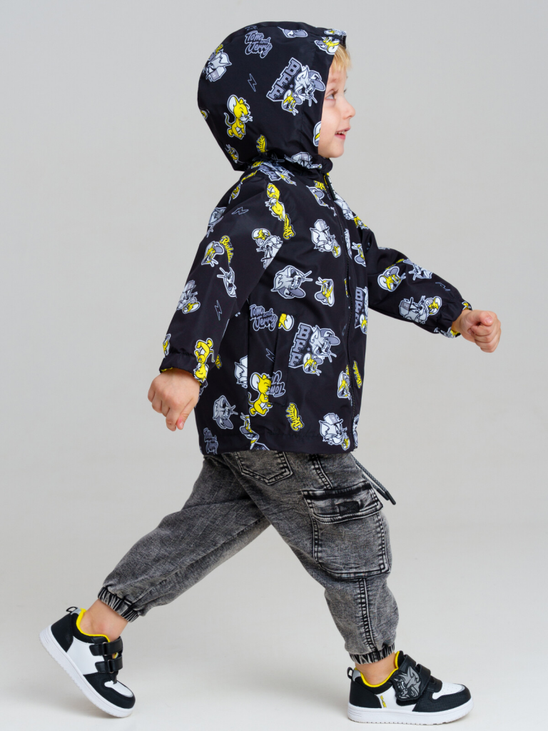 Куртка детская текстильная с полиуретановым покрытием для мальчиков (ветровка) черный,белый,жёлтый 12533004
