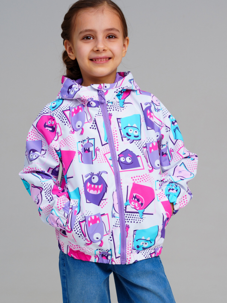 Ветровка детская на трикотажной подкладке для девочки. Мембранное покрытие 5000х5000. Температурный режим до +10°С*. Линия температурного режима X-LIGHT. Идеально подходит для весны и теплой осени. Внутренняя ветрозащитная планка. Манжеты и низ изделия на резинке. Два боковых кармана. Внутренний карман на липучке. Несъемный капюшон с резинкой надежно защищает голову ребенка от ветра и осадков.*Пожалуйста, обратите внимание, что указанный температурный режим является приблизительным и зависит от многих факторов, таких, как возраст, физическое состояние, уровень активности ребенка и количество слоев одежды. Время, проведенное на открытом воздухе, и погодные условия, такие как холодный ветер, могут повлиять на тепловые характеристики изделия. Убедитесь, что защищены от холода голова, руки и ноги. Верх: 100% полиэстерМембрана 5000*5000Подкладка: 60% хлопок, 40% полиэстр