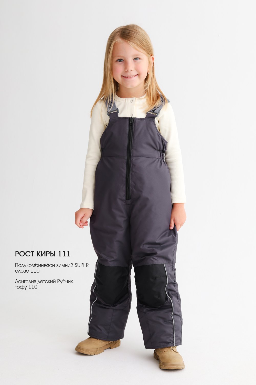 Эластичные наплечные лямки, регулируемые по длине. Центральная застежка на тракторную молнию. В местах максимальной нагрузки вставки из особо прочной ткани. Это значительно увеличивает срок службы изделию, сохраняя его функциональность и внешний вид даже после самых активных игр и многократных стирок. Световозвращающие элементы (безопасность в любое время суток). Внутренние манжеты на антискользящих резиной. Примерный температурный режим от 0°С до -30°С.
