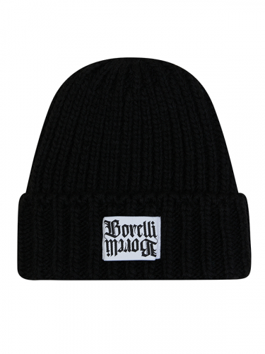 Вязаная шапка выполнена из мягкой, приятной на ощупь пряжи черного цвета. Она имеет классический фасон с отворотом, на котором присутствует контрастная черно-белая нашивка с надписью. Универсальный дизайн подчеркнет любой образ, добавив уют и тепло в холодное время года. А также обеспечит комфорт и защиту от ветра. Этот аксессуар подойдет для повседневных прогулок или зимних игр.