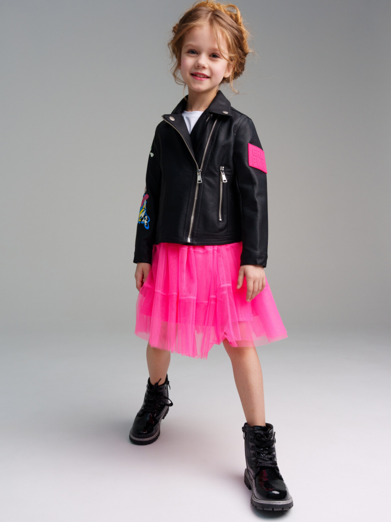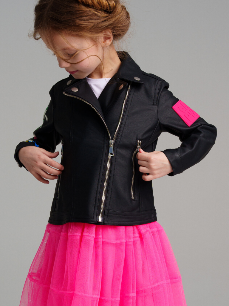 Ст.цена 1866р. Куртка кожаная для девочек черный,разноцветный 12442003
