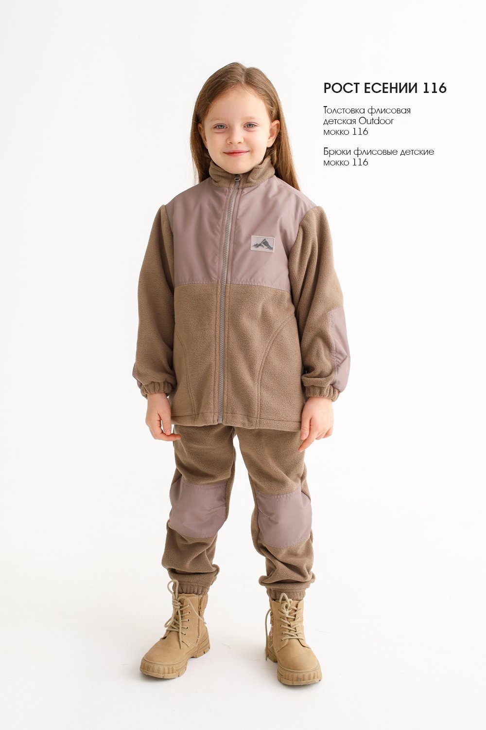 Толстовка на тракторной молнии с защитой подбородка от защемления. Кокетки и локти усилены плащевой тканью. По низу изделия кулиса со шляпной резиной, рукава с манжетами на резинке. Фирменная нашивка «Горы».