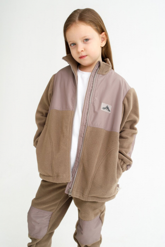 Толстовка на тракторной молнии с защитой подбородка от защемления. Кокетки и локти усилены плащевой тканью. По низу изделия кулиса со шляпной резиной, рукава с манжетами на резинке. Фирменная нашивка «Горы».