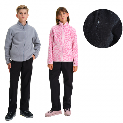 Состав: 95%полиэстер 5%эластан+мембрана, подклад: 100%полиэстерОписание: Брюки детские из софтшелла — надёжная защита от ветра и влаги во время прогулок, игр и активного отдыха на улице. Мембрана 3000×3000 обеспечивает отличную водонепроницаемость и вентиляцию: ребёнок остаётся сухим и чувствует себя комфортно даже в дождливую или ветреную погоду. Модель сшита из прочной мембранной ткани с мягким флисовым подкладом, который сохраняет тепло и создаёт уют. Брюки слегка заужены книзу, но при этом имеют достаточный объём, чтобы их можно было легко надеть поверх обычных брюк или колготок. Это практичное решение для родителей: ребёнок выходит из дома в привычной одежде, а поверх надевает софтшелл брюки — и готов к прогулке, походу в детский сад и школу или спортивным занятиям. Высокая посадка и широкий пояс на резинке с внутренним шнурком обеспечивают надёжную фиксацию и возможность регулировки по фигуре. Брюки не сползают и не мешают движениям даже при активных играх. По бокам расположены удобные прорезные карманы. В нижней части брюк добавлены светоотражающие элементы, которые повышают безопасность ребёнка в тёмное время суток. Практичный чёрный цвет и плотная софтшелл ткань делают модель устойчивой к загрязнениям. Даже если ребёнок активно играет на улице, брюки легко очищаются от грязи и долго сохраняют аккуратный вид. Эти детские демисезонные брюки подходят и мальчикам, и девочкам. Они станут универсальной верхней одеждой для прогулок в парке, походов в детский сад, школу, активных игр и спорта на свежем воздухе. Преимущества: мембранная ткань с водоотталкивающей пропиткой: утепляющий флисовый подклад без лишнего объёма: возможность надевать поверх обычных брюк: удобные утяжки и пояс на резинке: лёгкая очистка от грязи: светоотражающие элементы для безопасности. Эти брюки демисезонные из софтшелла — практичный выбор для родителей, которые ищут функциональную и удобную одежду для ребёнка в межсезонье.