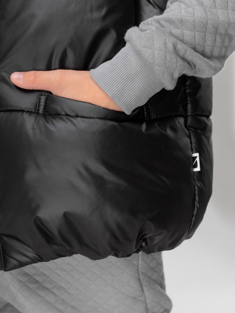 Материал Фитсистем стайл Состав 100% полиэстер Материал жилета FITSYSTEM имеет специальное водонепроницаемое и водоотталкивающее покрытие и пропитку, защищает от дождя, влаги и ветра. Материал верха: Fitsystem 100% полиэстер, утеплитель Hetta Filt S2 250 г/кв.м, подкладочный материал кулирная гладь 100% хлопок