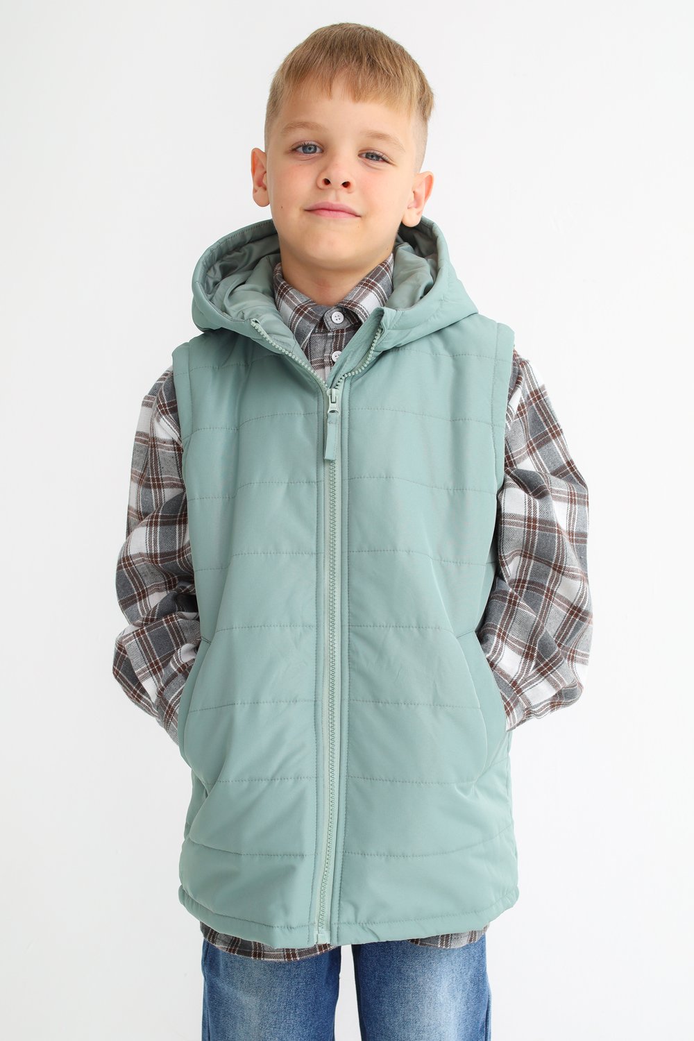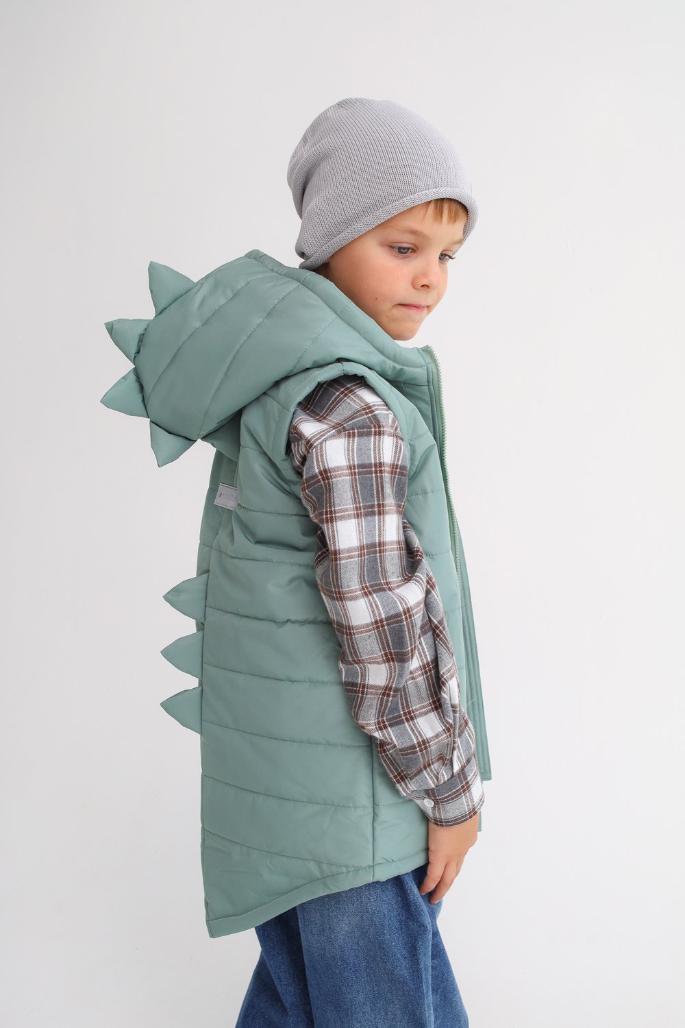 Жилет детский демисезонный Дино пыльный эвкалипт