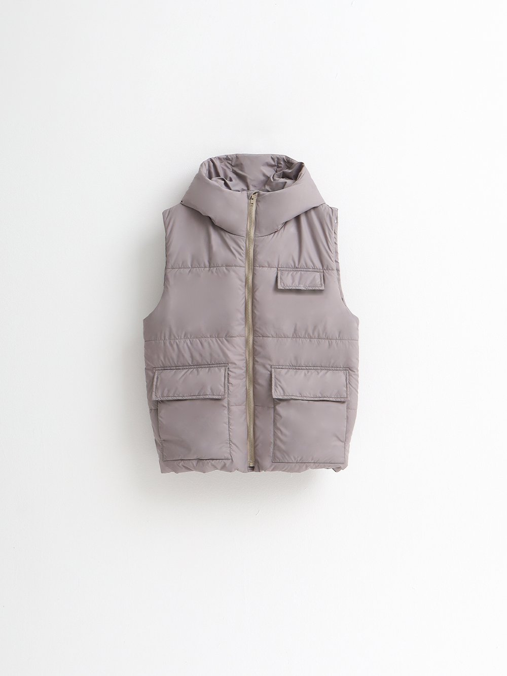 Жилет с капюшоном утепленный серо-бежевый