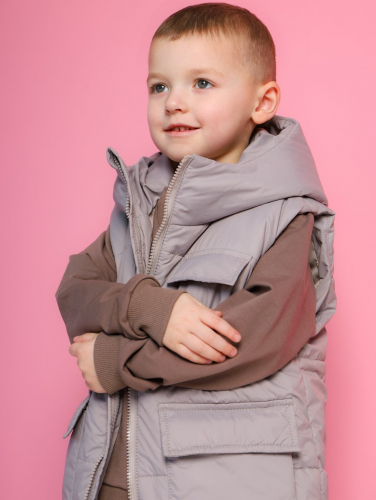 Жилет с капюшоном утепленный серо-бежевый детский