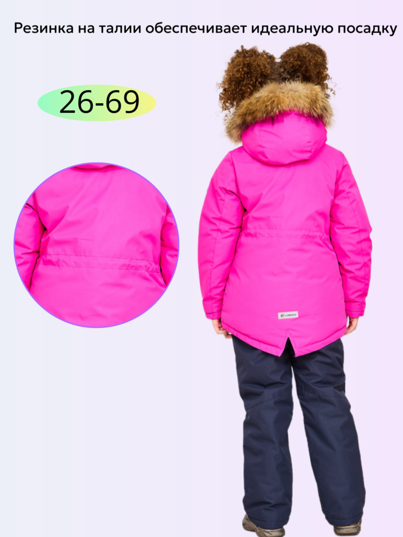 Модный и стильный зимний костюм для девочки, изготовленный из усиленной мембранной ткани, идеально подходит для активного отдыха на свежем воздухе. Показатели мембранной ткани:* Водостойкость: 5000 мм;* Воздухопроницаемость: 3000 г/м2/сутки.