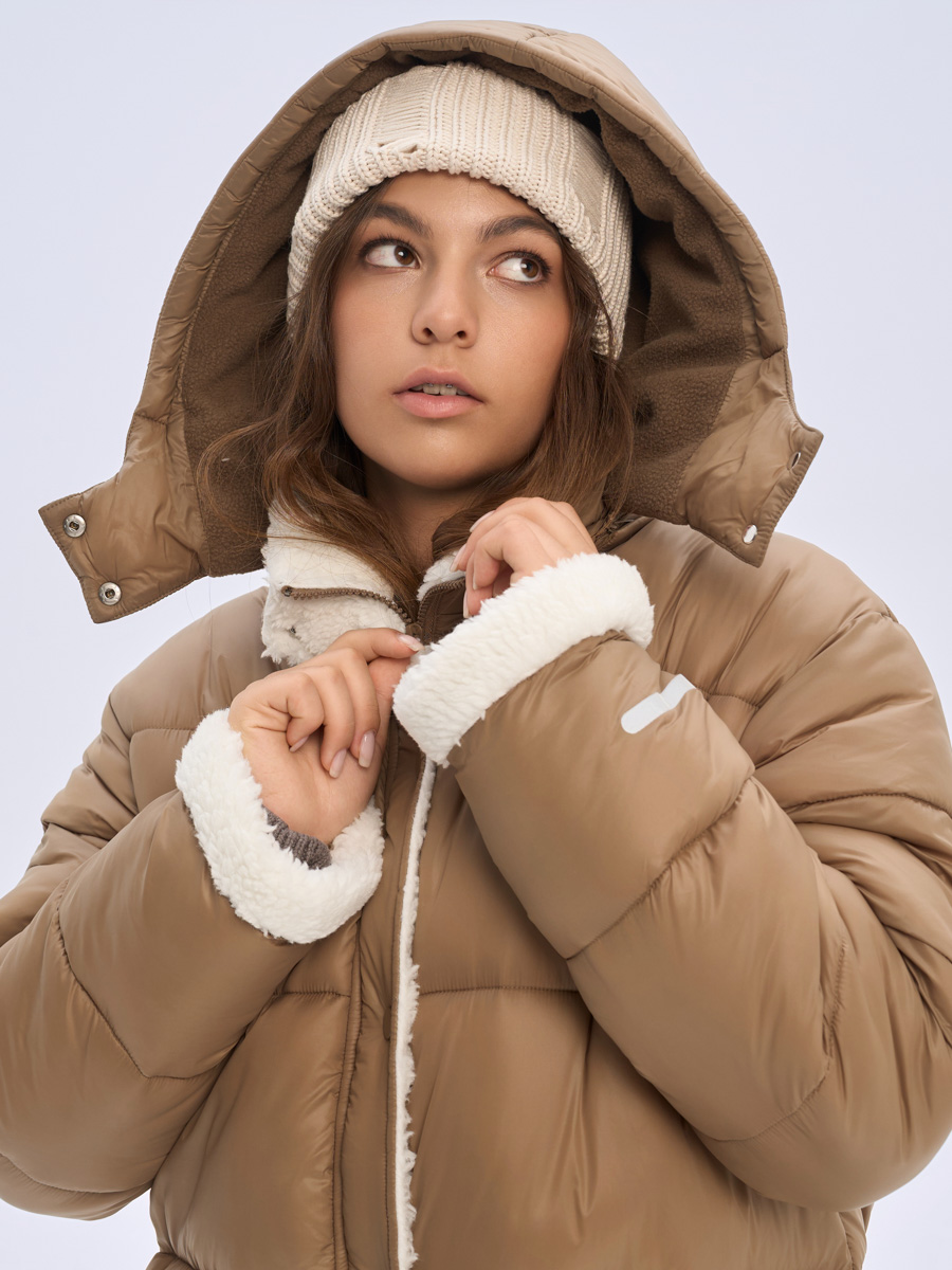Куртка с утеплителем 300г/м2 Утепленные флисовые боковые карманы, в которые помещается телефон. Есть вместительный внутренний карман, также помещается телефон. Приятный материал верха с водооталкивающей пропиткой 4 уровня. Светоотражающие элементы сзади и на рукаве. Манжеты стянуты резинкой для сохранения тепла. По карю картманов, низа, капюшона и краю бора (застежки) отделана исксственным мехом. Силуэт - авиатор.