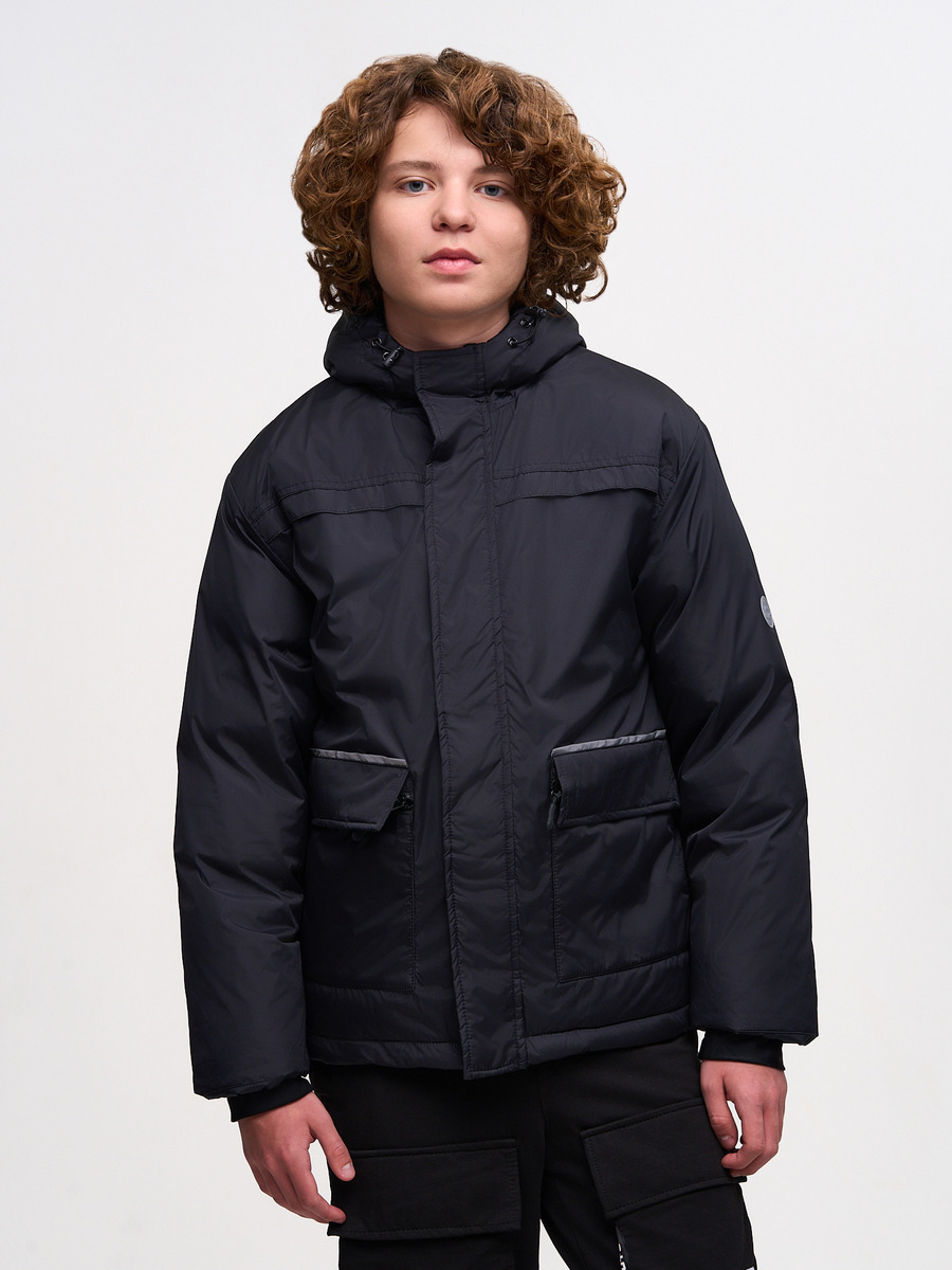 Утепленная зимняя куртка свободного прямого силуэта с втачным рукавом. Втачной капюшон с высокой горловиной надежно защищает от ветра и снега. Край капюшона-с кулисой, регулируемой шнуром-резинкой и стопорами. По низу рукава эластичный трикотажный манжет с прорезью для большого пальца обеспечивает сохранение тепла. На левом рукаве светоотражающая нашивка с фирменным логотипом. Кокетка на полочке придает оригинальный вид изделию. Застежка центральная на молнию с оригинальным черным пуллером и ветрозащитной планкой на магнитах, а также внутренней стеганой планкой. Накладные карманы снабжены верхним клапаном на липучках и и застегиваются на молнию с оригинальным черным пуллером. По верху клапана кармана светоотражающая вставка-кант. Ширина низа изделия регулируется с помощью эластичного шнура со стопорами. Вся наша продукция сертифицирована и соответствует высочайшим стандартам качества, наша компания является участником программы "Бережливое производство" черный