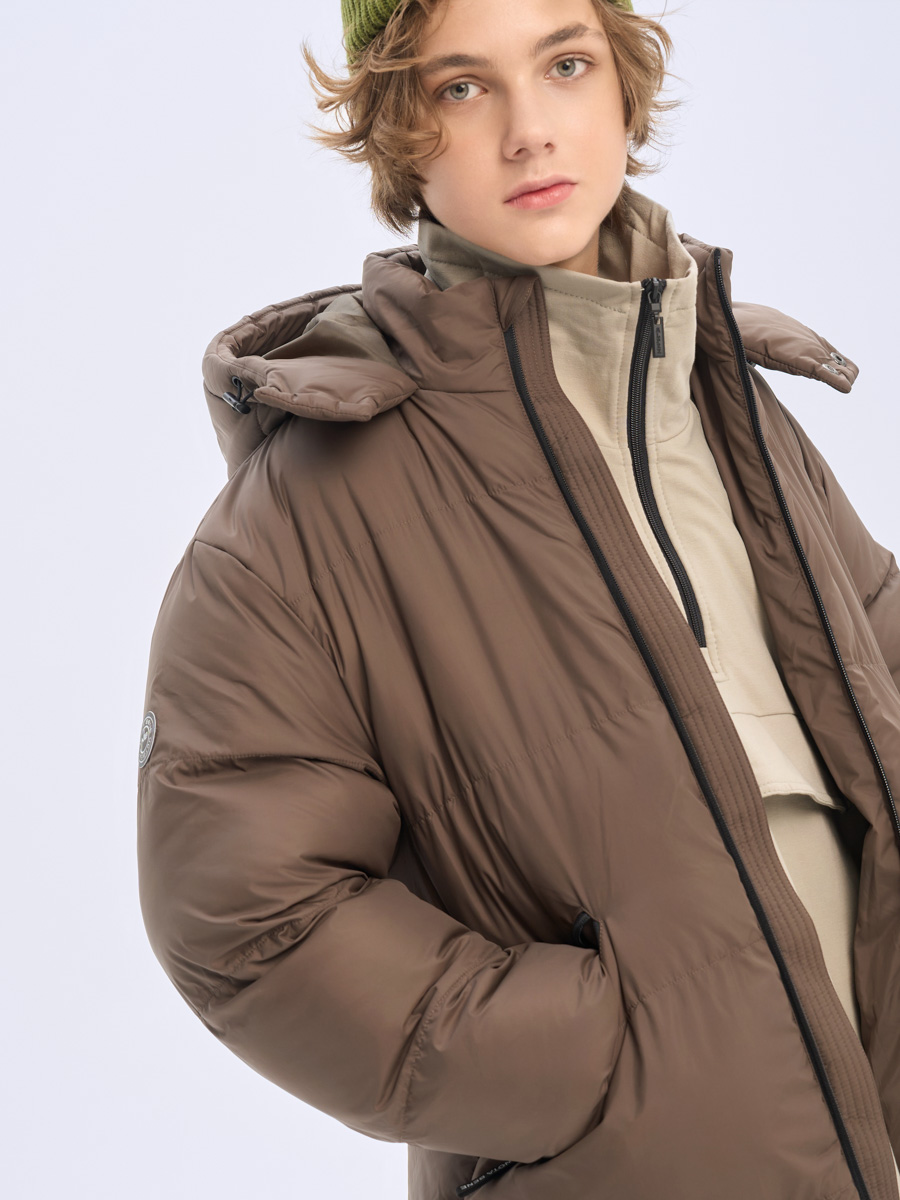 Удлиненная куртка с утеплителем 300г/м2. Вместительные боковые карманы, в которые помещается телефон. Светоотражающие элементы сзади по низу и в виде нашивки на рукаве. Манжет стянут резинкой для сохранения тепла. Комфортный капюшон с возможностью утяжки по краю капюшона.