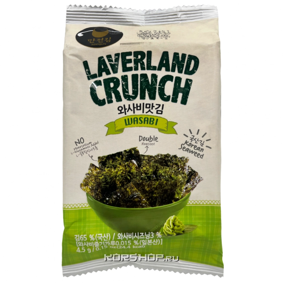 Хрустящая морская капуста со вкусом васаби Manjun, Корея, 4,5 г