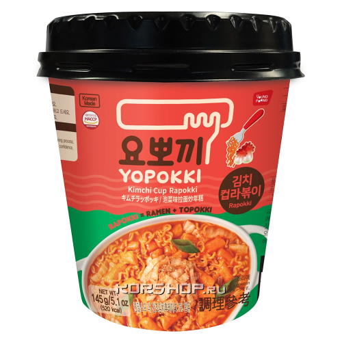 Рисовые клецки с лапшой (рапокки) в соусе кимчи Yopokki, Корея, 145 г. Срок до 25.02.2026.Распродажа
