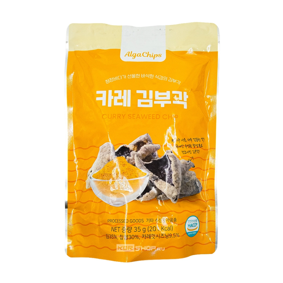 Снеки из морских водорослей с карри в хрустящем кляре AlgaChips, Корея, 35 г