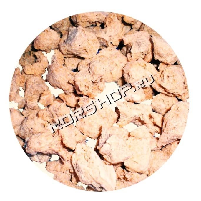 Соевое мясо – это натуральный продукт растительного происхождения, который изготавливается из обезжиренной соевой муки. Попадая в воду, он быстро увеличивается в размерах и становится очень сочным. Его можно использовать для тушения и жарки, а также добавлять в супы.