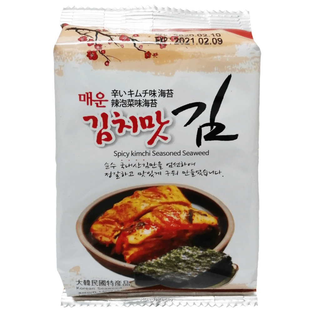 Состав: Сушеная морская капуста, кукурузное масло, кунжутное масло, приправа кимчи, острый перец, соль, жареная соль.