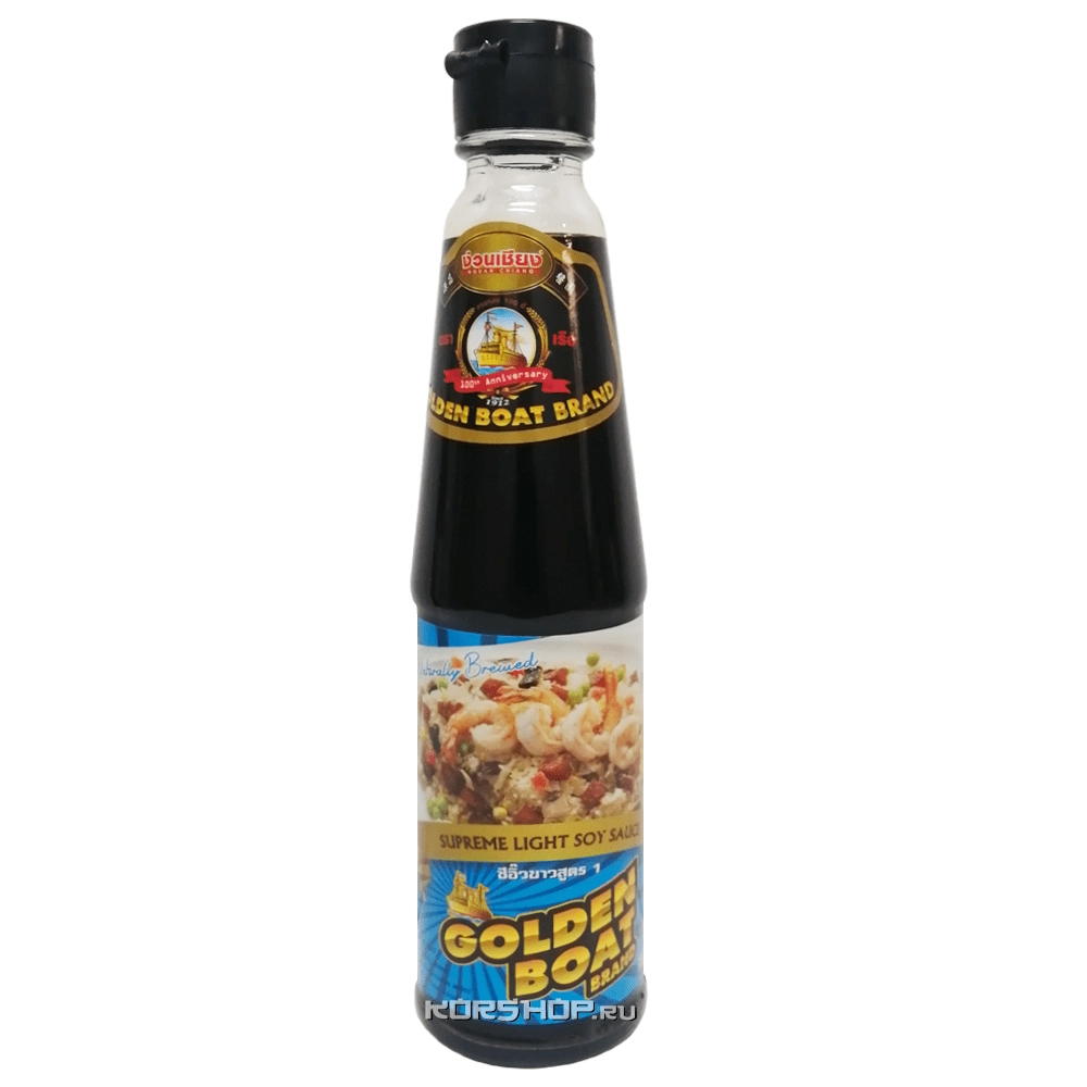 Светлый соевый соус высшего сорта от торговой марки Golden Boat имеет более насыщенный соленый вкус, чем темный. Его можно добавлять в блюда вместо поваренной соли, чтобы сократить ее употребление. Этот продукт придает блюдам незабываемый вкус и обогащает их полезными для здоровья антиоксидантами.