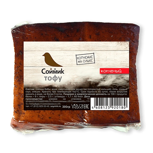 Копченый тофу от торговой марки «Соймик» имеет минимальную калорийность и подходит для диетического меню. Его приятный вкус делает этот продукт идеальным дополнением для салатов и вторых блюд. В соевом твороге содержится белок, который замечательно усваивается организмом, а также замедляющие старение антиоксиданты, что делает его очень полезным для людей всех возрастов.
