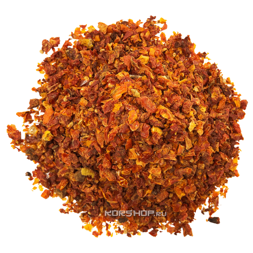 Сушеный томат 5х5 мм – удобный формат приправы на основе измельченных и высушенных помидоров. Имеет яркий богатый томатный вкус и украсит собой любое блюдо. Сушеные томатные хлопья добавляют в борщ, различные супы, тушеные и жареные блюда. С ними очень вкусны мясо, птица и рыба. Они придадут яркий оттенок вкусу овощных супов, рагу и гарниров. Сушеные томаты – отличная приправа для пиццы, яичницы, чесночных гренок, домашних соусов и паст, блюд из фасоли и чечевицы, домашнего ароматизированного сухими приправами оливкового масла. Сушеные томаты используются во многих европейских, азиатских и кавказских блюдах.