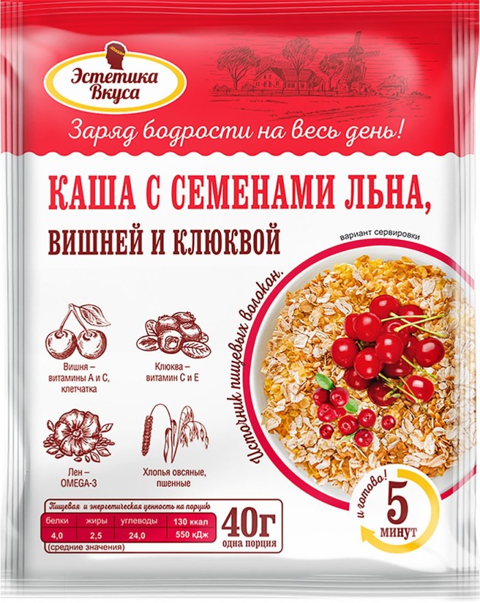 ЭВ Каша (хлопья овсяные, пшенные) с семенами льна, вишней и клюквой, 40 г