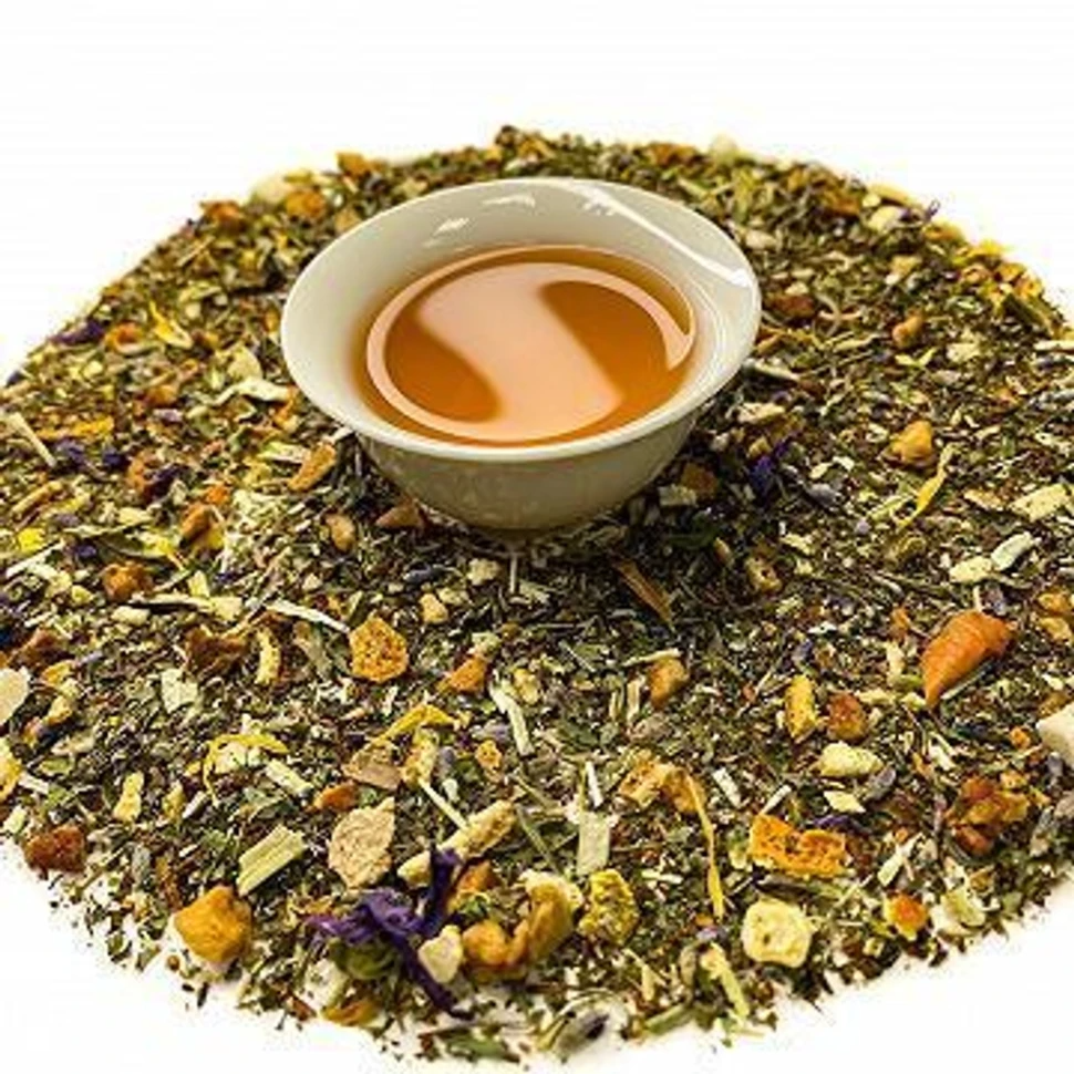 Мята, ройбос, мелисса, ананас, лаванда, василек, календула, яблоко, цедра апельсина, пустырник. Без ароматизаторов.