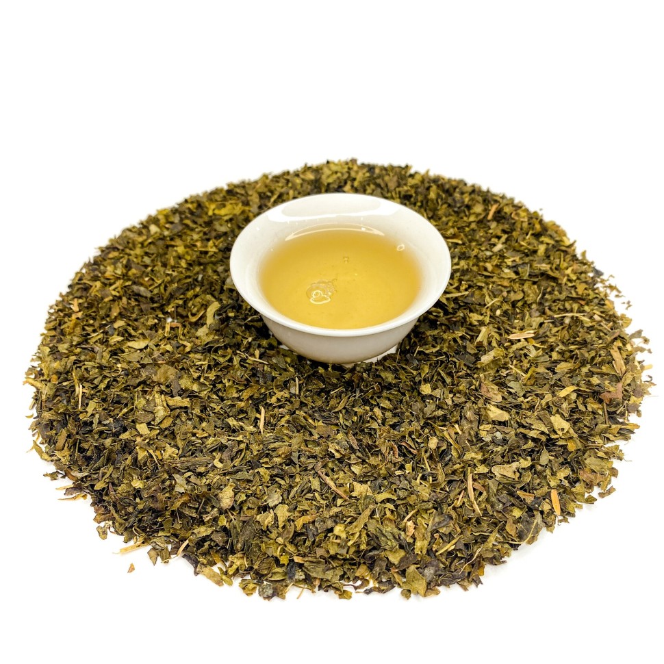 Зеленый чай из Северной Индии. Листья среднего размера, ломанные, встречаются черенки. Листья темно- и светло-зеленого цвета.
