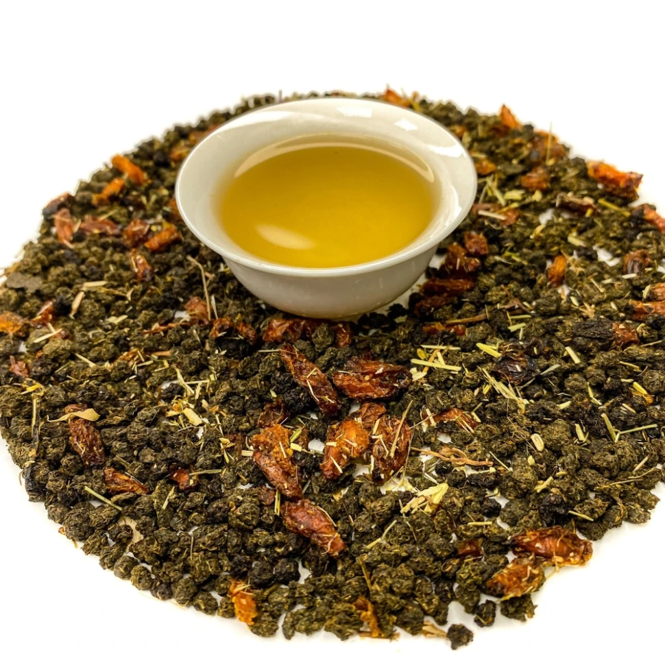 Купаж на основе гранулированного Иван-чая с добавлением ягод облепихи, дополненный зверобоем. Ароматизирован натуральными маслами. Сбалансированный вкус с ярким ягодным ароматом.