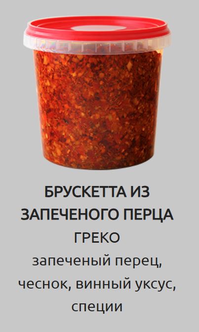 Брускетта из запеченого перца "ГРЕКО" (запеченый перец, чеснок, укроп, петрушка, оливковое масло ЭВ)