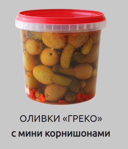Оливки ГРЕКО с мини корнишонами пластиковое ведро 1кг