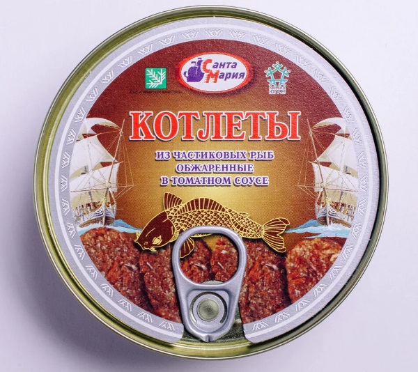 Состав: фарш рыбный, томатная паста, масло растительное, лук, мука пшеничная, сахар, лавровый лист, соль, перец душистый горошек, гвоздика, кориандр, уксусная кислота.