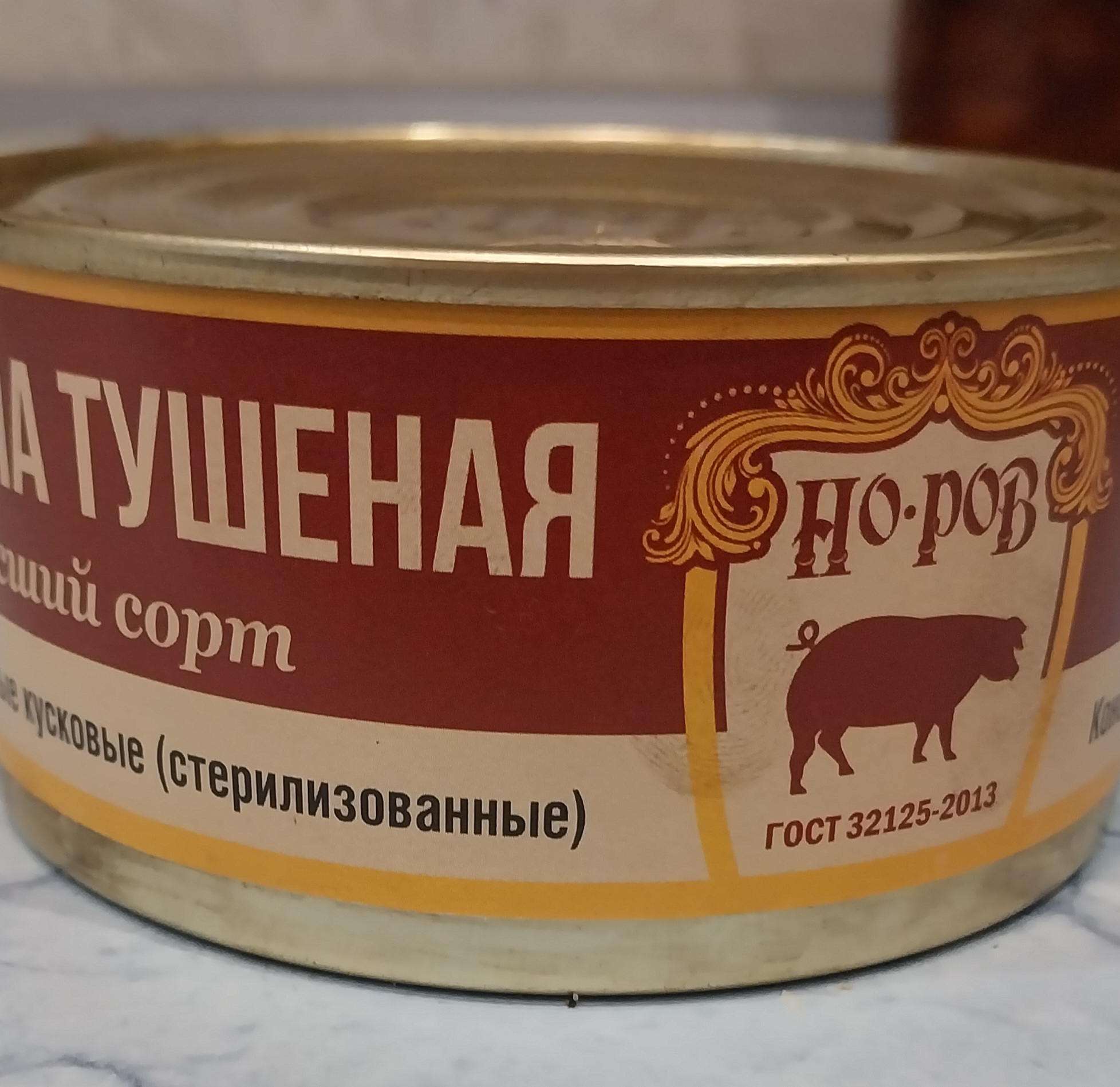 Хорошая тушенка, мясо вкусное, но на мой вкус пересолено.