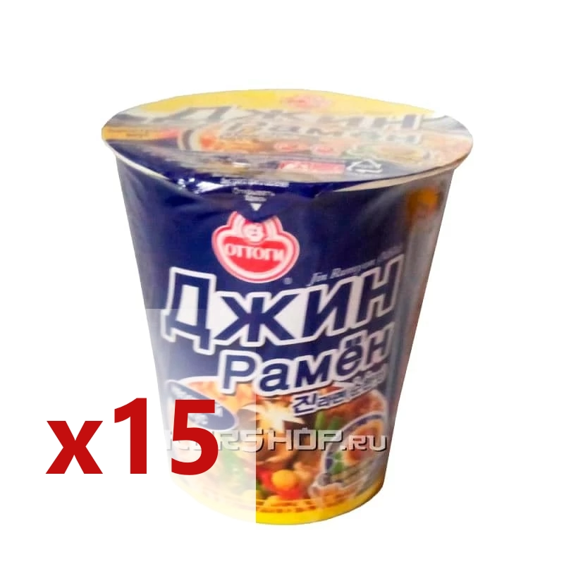 Лапша сублимированная Джин Рамен (неострая) Оттоги/Ottogi – целая коробка вкуснейшей корейской лапши специально для ценителей неострых азиатских блюд. В коробке 15 порций, каждая в стаканчике, удобном для заваривания. Лапша готовится всего за три минуты – достаточно всего лишь залить содержимое стаканчика кипятком. Ценители корейского рамена, которые предпочитают неострые блюда, очень любят этот вариант Джин Рамен – упругая мягкая и очень вкусная лапша, аппетитный ароматный бульон с богатой вкусовой гаммой. По желанию можно добавить к лапше половинки вареного яйца, колечки зеленого лука, маринованные овощи.