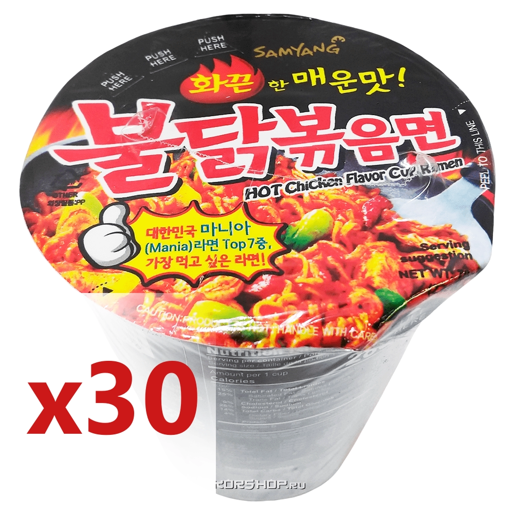 1 кор. Острая лапша рамен со вкусом курицы Samyang (стакан), Корея (30 шт *70 г). Срок до 11.03.2026.Распродажа