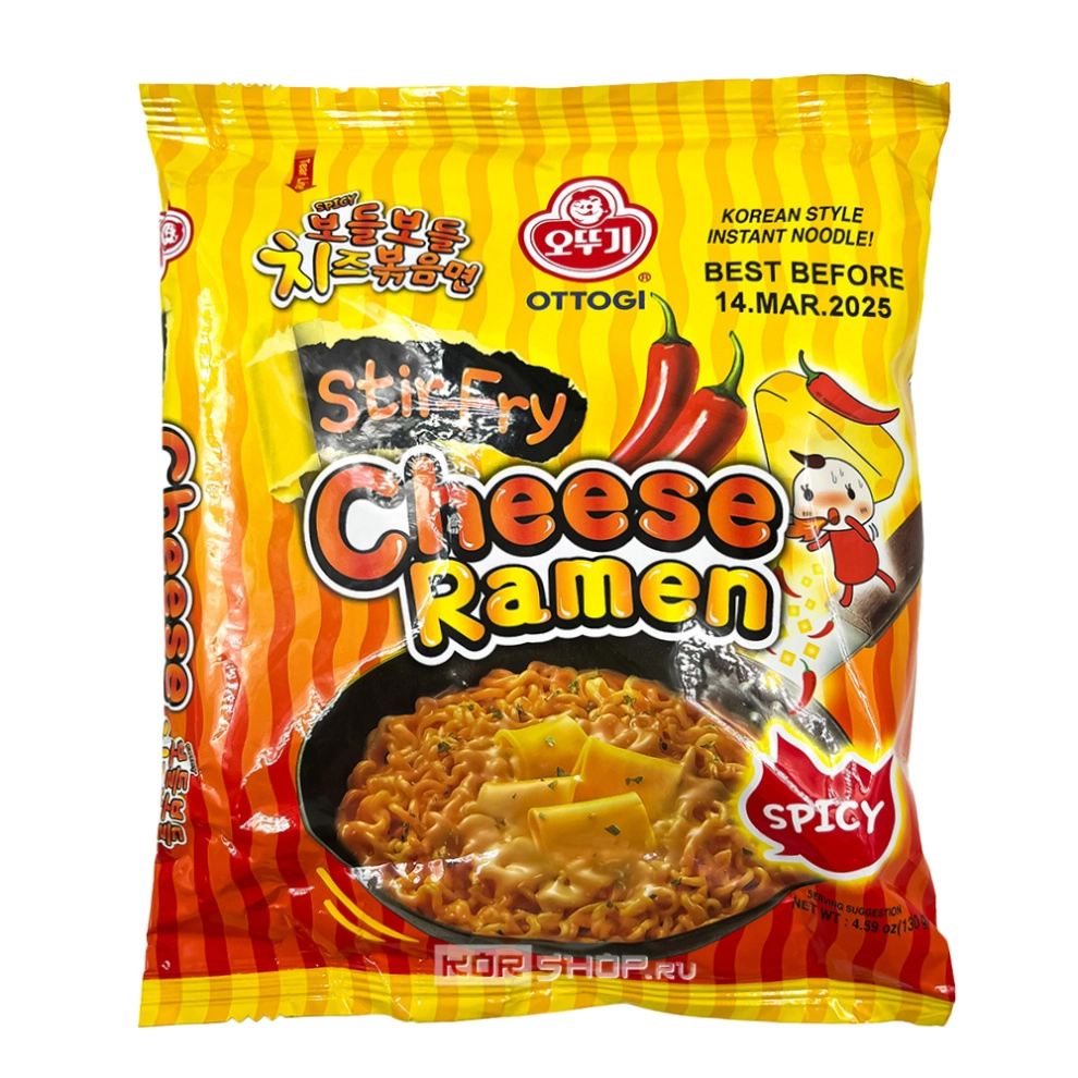 Лапша б/п сырный острый рамен стир-фрай Stir Fry Cheese Ramen Ottogi – вкусная корейская лапша быстрого приготовления с насыщенным вкусом сырного соуса. Лапша от Оттоги отличается высоким качеством, отменным вкусом, отличной упругостью и эластичностью, она хорошо впитывает в себя соусы и бульон, в котором заваривается. Этот рамен доставит огромное удовольствие ценителям сырных вкусов. Лапша будет готова буквально за 2-3 минуты без малейших усилий с вашей стороны. Отличный вариант вкусного горячего обеда в условиях нехватки времени, на рабочем месте, а также в поездке, в командировке, на отдыхе. При желании лапшу можно дополнить мелко нарубленной свежей зеленью, половинками вареного яйца.